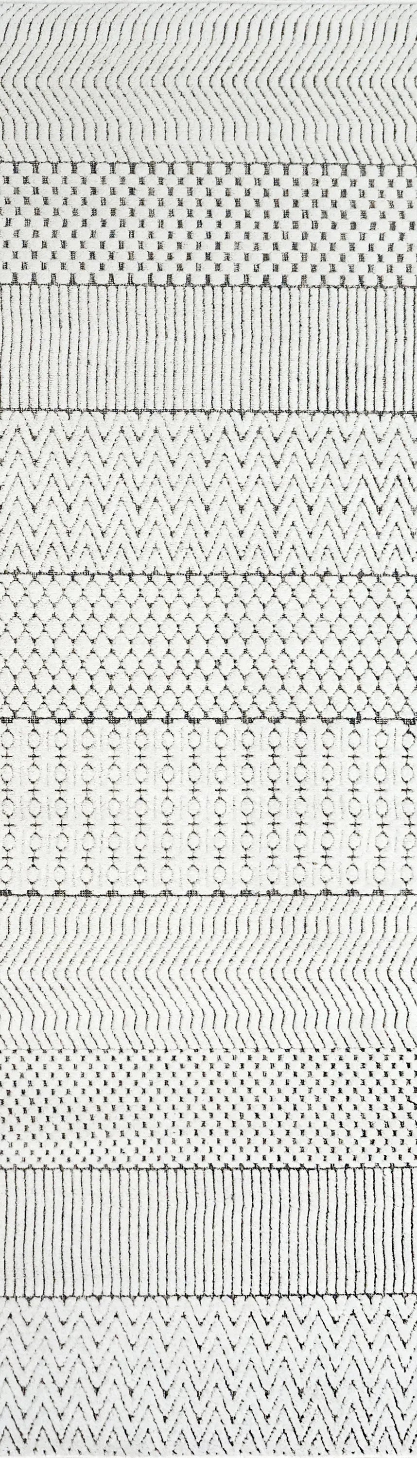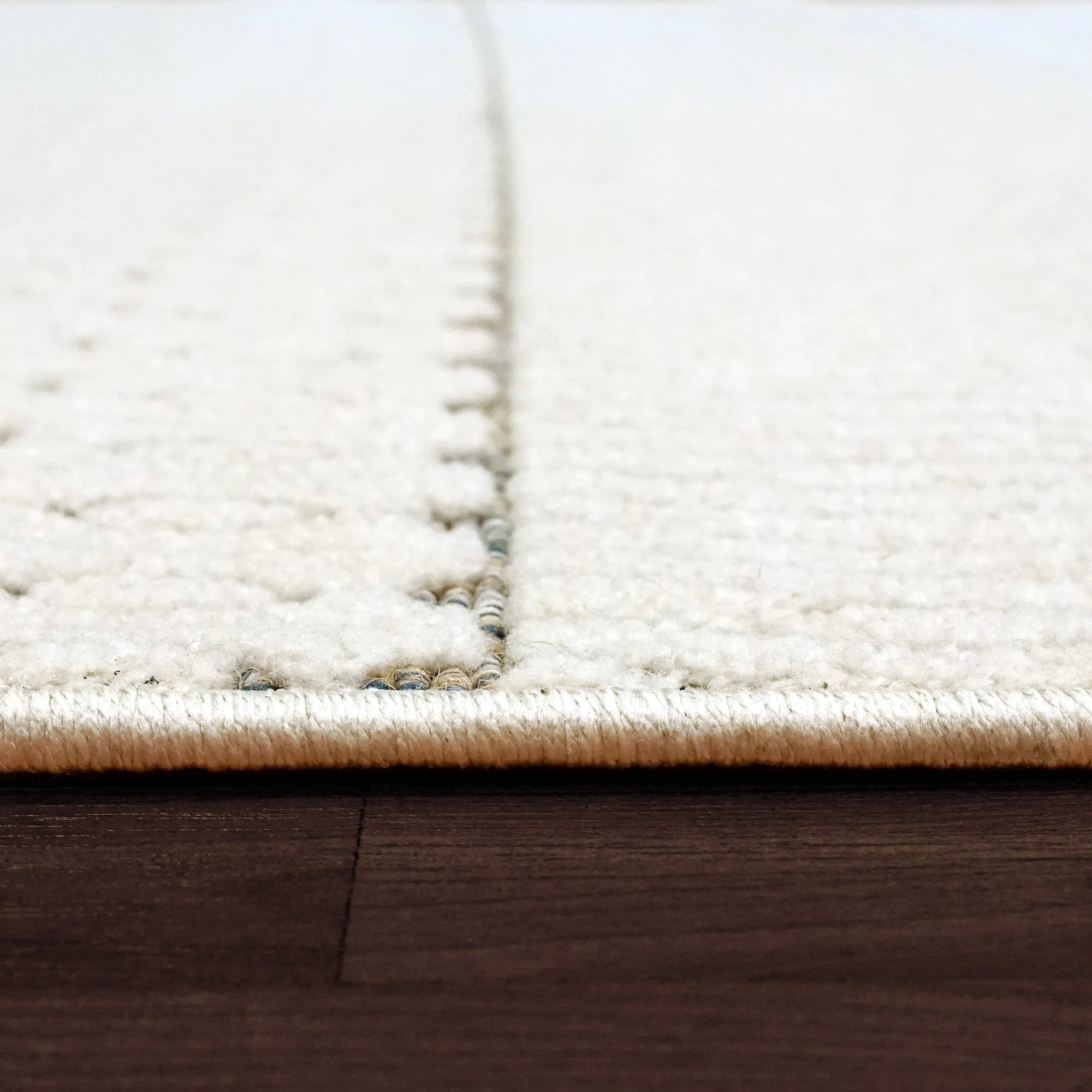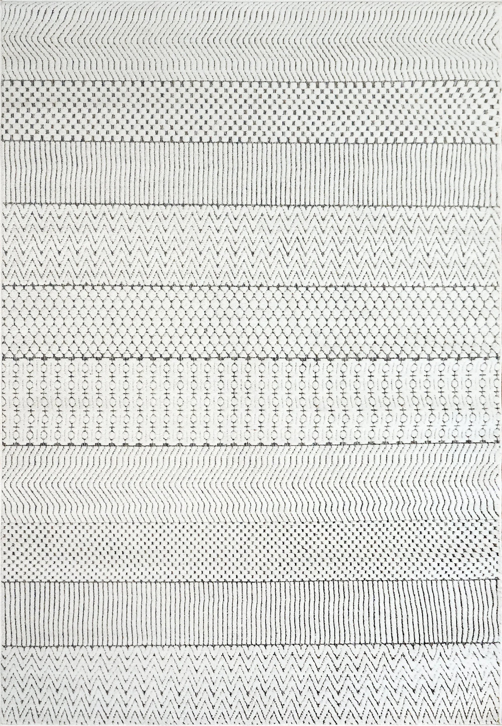 Lotus displays intricate contemporary designs that embolden any modern aesthetic. The detailed weaving in these rugs exists in three facets: the high-low texture, the changing yarn colors as a backdrop, and the designs. The color palette is more than meets the eye with these rugs, with ivory overlaying a more complex color scheme underneath, including black, blue, and multicolored yarns. Tightly woven and firm in their composure, these rugs are both durable and practical in their maintenance.