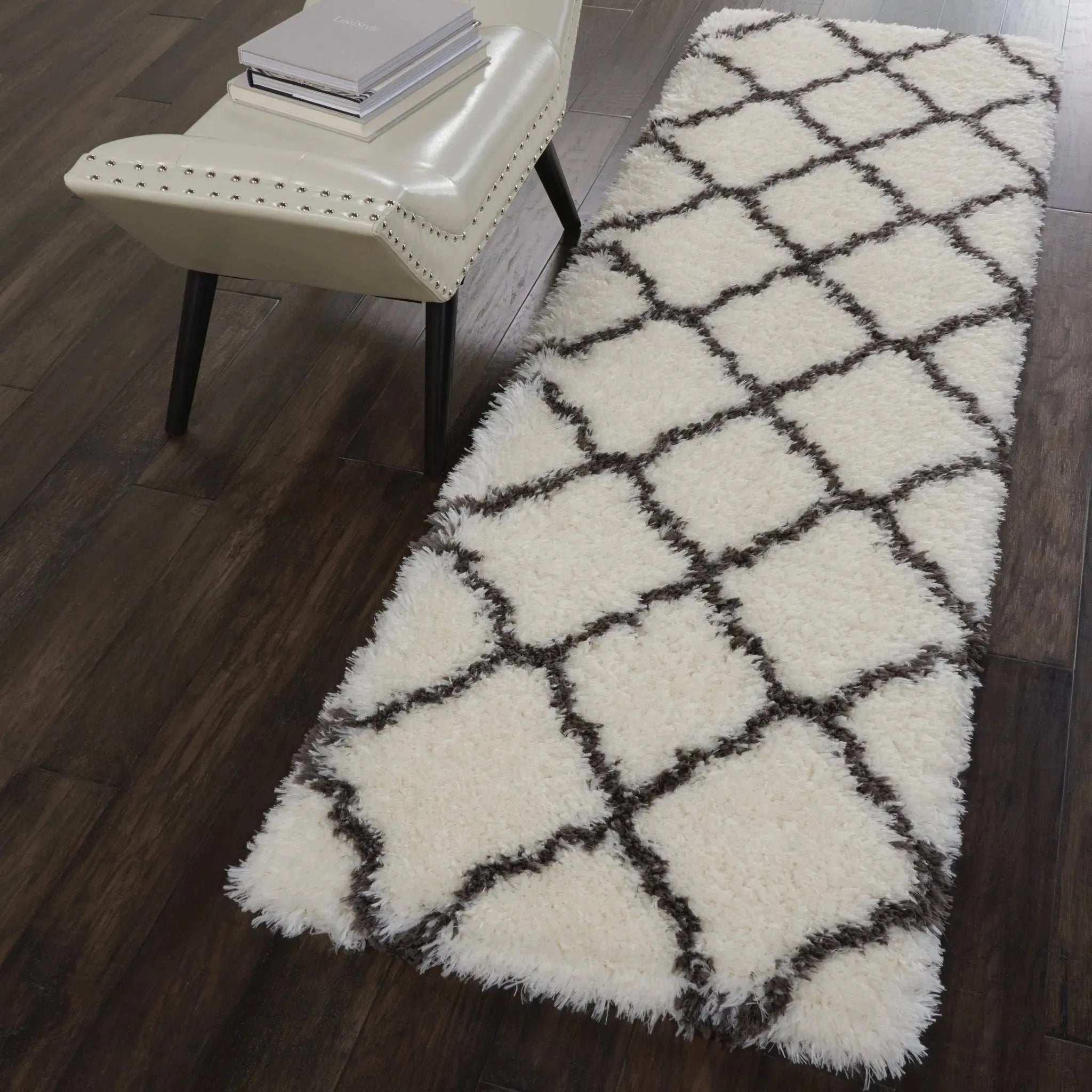 With a shag pile deep enough to lose yourself in, the Nourison Luxe Shag area rug collection brings a warm, luxurious touch to your home, woven on state-of-the-art looms for excellent durability. This collection features sleek solid greys and neutral tones as well as traditional Moroccan lattice designs, with plush 2-inch flokati shag pile for comfort that never goes out of style. This rug is perfect for your living room, dining room, den, bedroom, or any living space