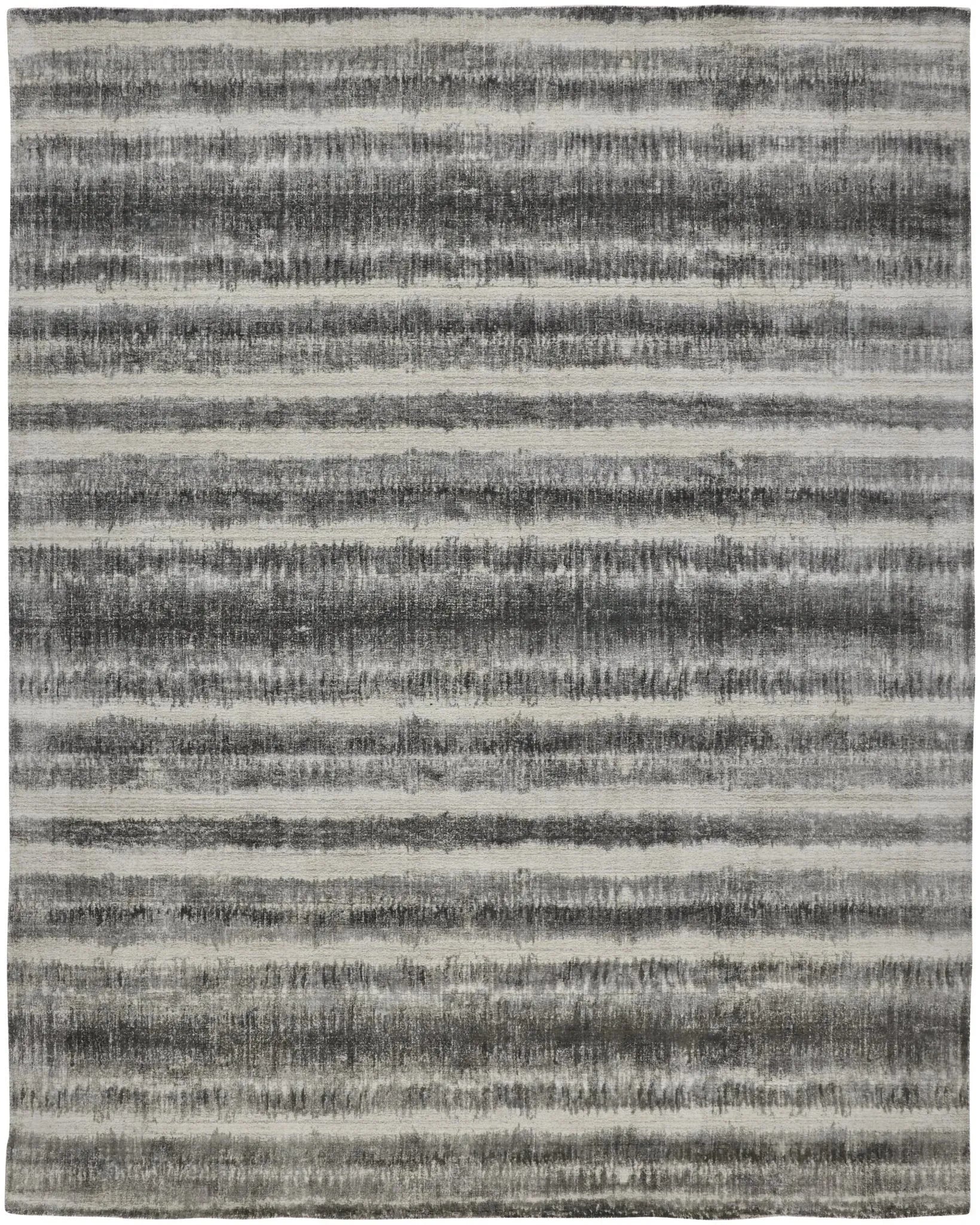 An artful spin on the classic stripe, Mackay is a solid collection for creating movement within a room. Like abstract soundwaves, its monochromatic gradients dance rhythmically across the low pile texture. Its luxurious sheen and distressed effects bring effortless style to any modern space.