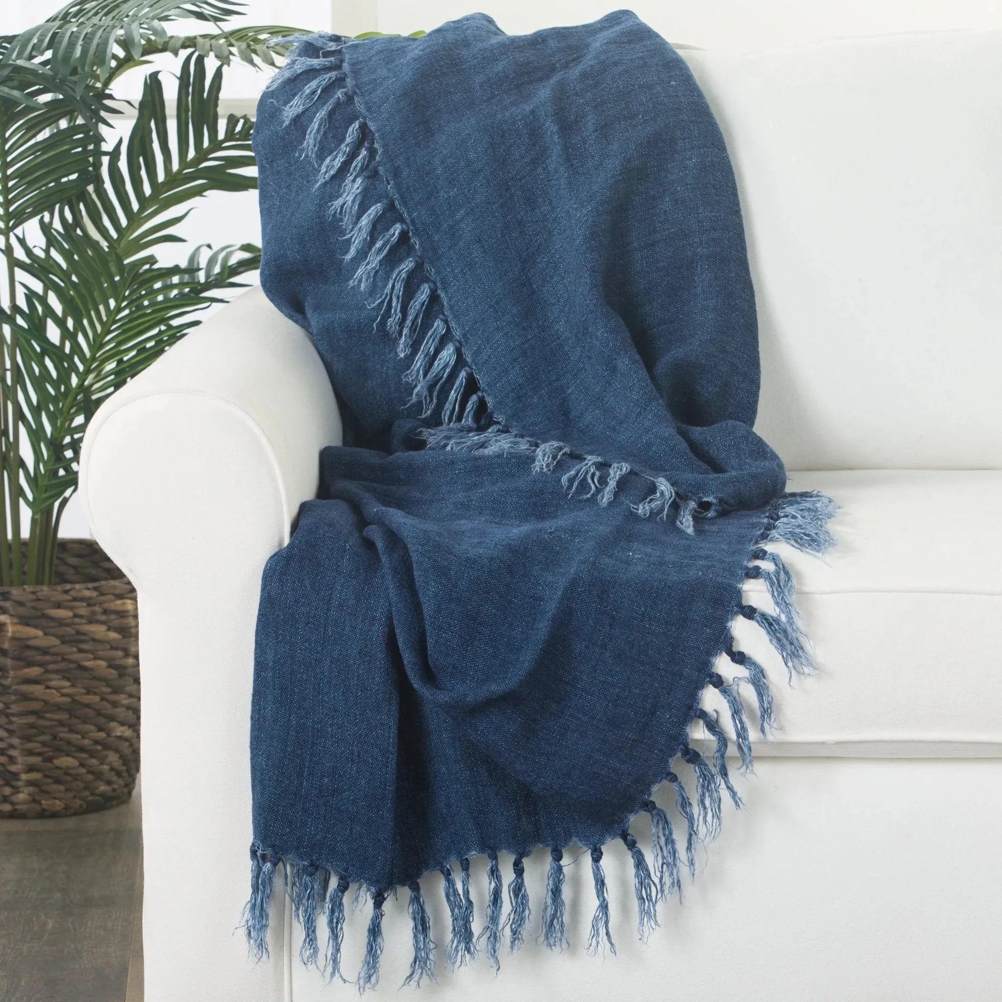 The understated and elegant Madura collection brings fresh, stylish appeal to coastal and rustic spaces alike. This deep indigo throw is crafted of 100% linen and features soft tassels for added texture and charm.