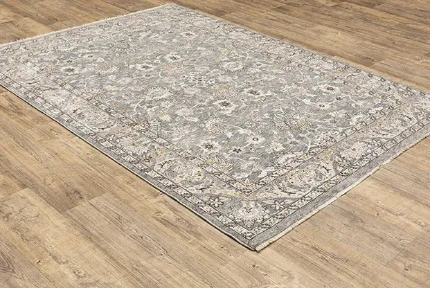 Maharaja is a study in understated elegance. This new million point collection is full of sophisticated traditional designs that have been re-imagined into a lovely new color palette. Timeless neutral tones alongside mellow shades of bluestone and muted amber offer subtle treatments for intricately detailed patterns. These beautiful rugs are powerloomed of incredibly soft, space-dyed polyester.