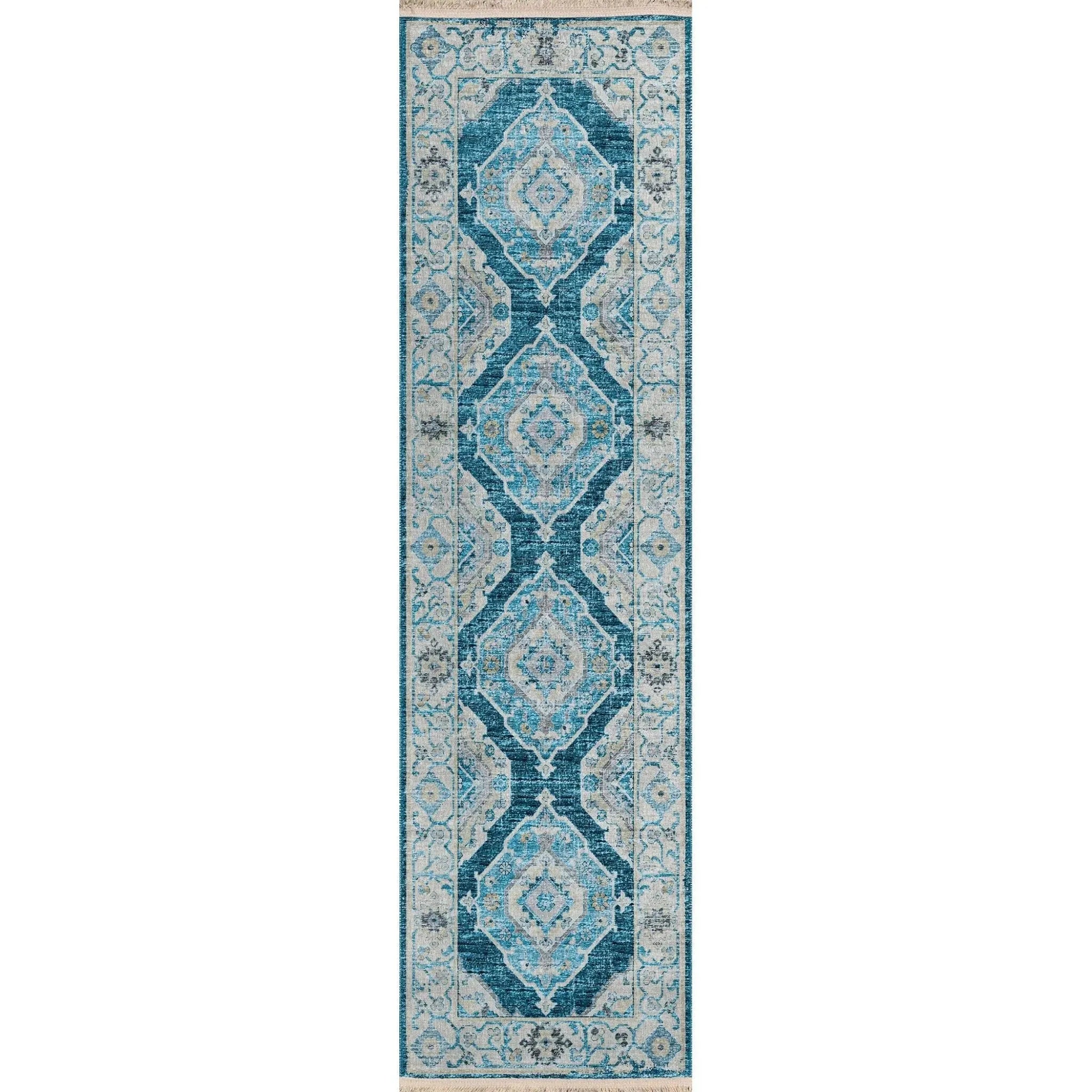The Parisa PSA06 Denim/Multi Rug comes in various sizes, including 2x10, 5x7, 8x10, 8x11, 9x13, and 12x15 feet, accommodating different room dimensions.