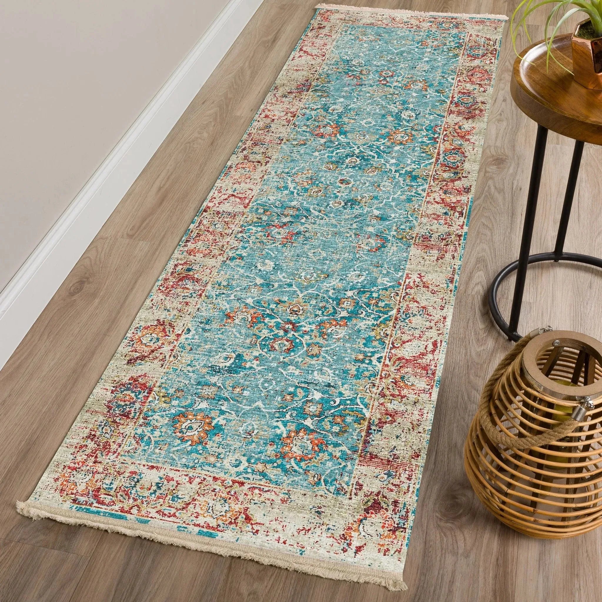 The Parisa PSA06 Denim/Multi Rug comes in various sizes, including 2x10, 5x7, 8x10, 8x11, 9x13, and 12x15 feet, accommodating different room dimensions.