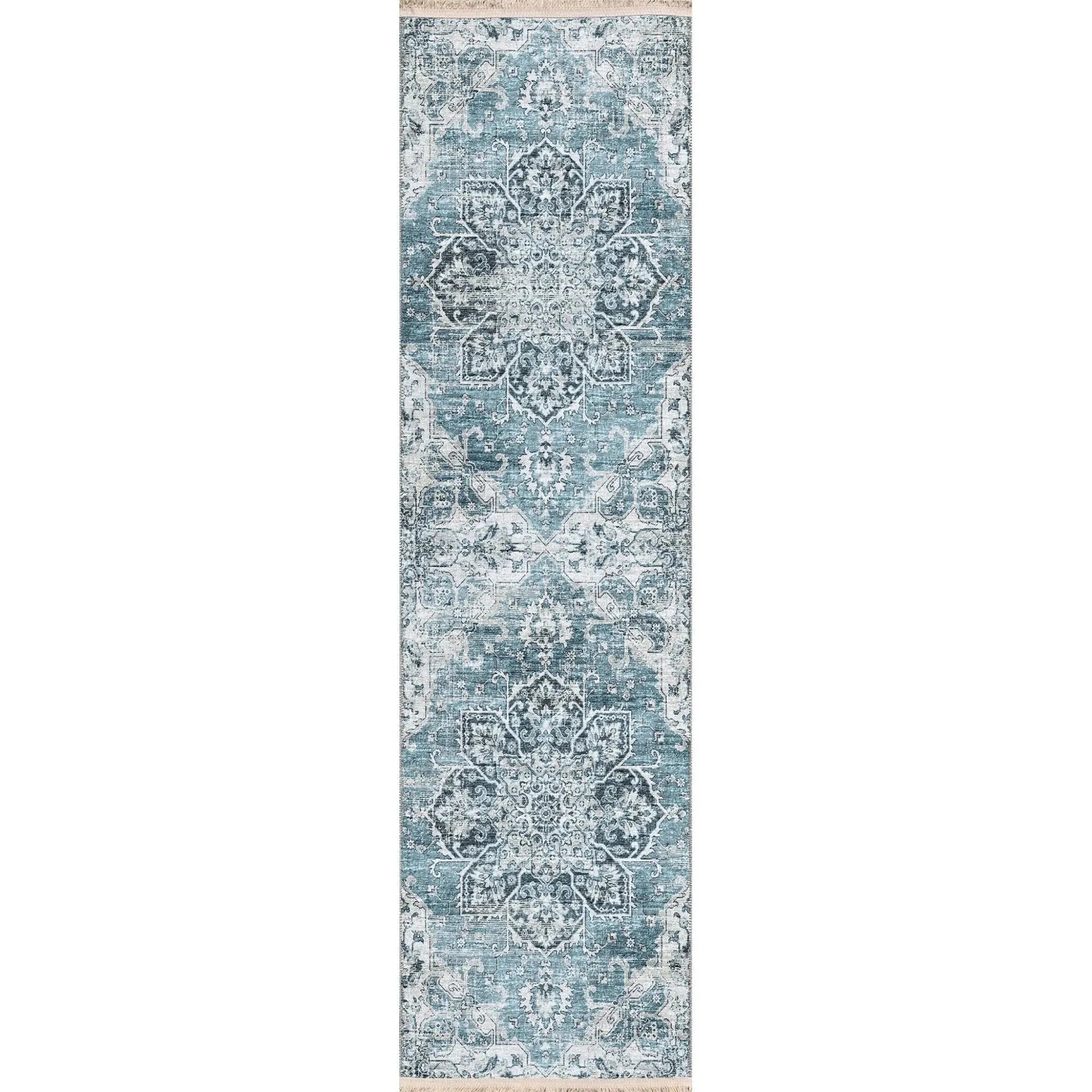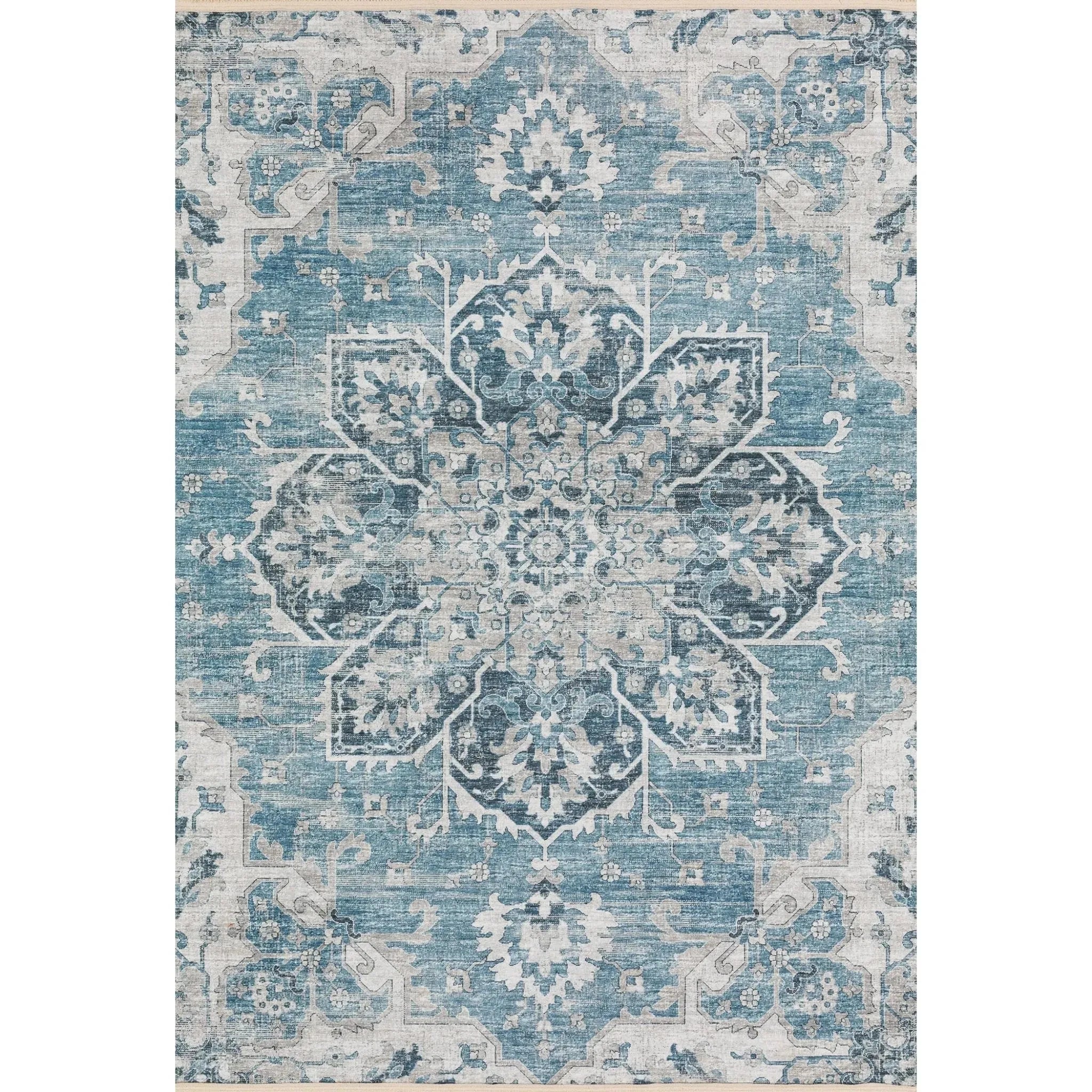 The Parisa PSA06 Denim/Multi Rug comes in various sizes, including 2x10, 5x7, 8x10, 8x11, 9x13, and 12x15 feet, accommodating different room dimensions.