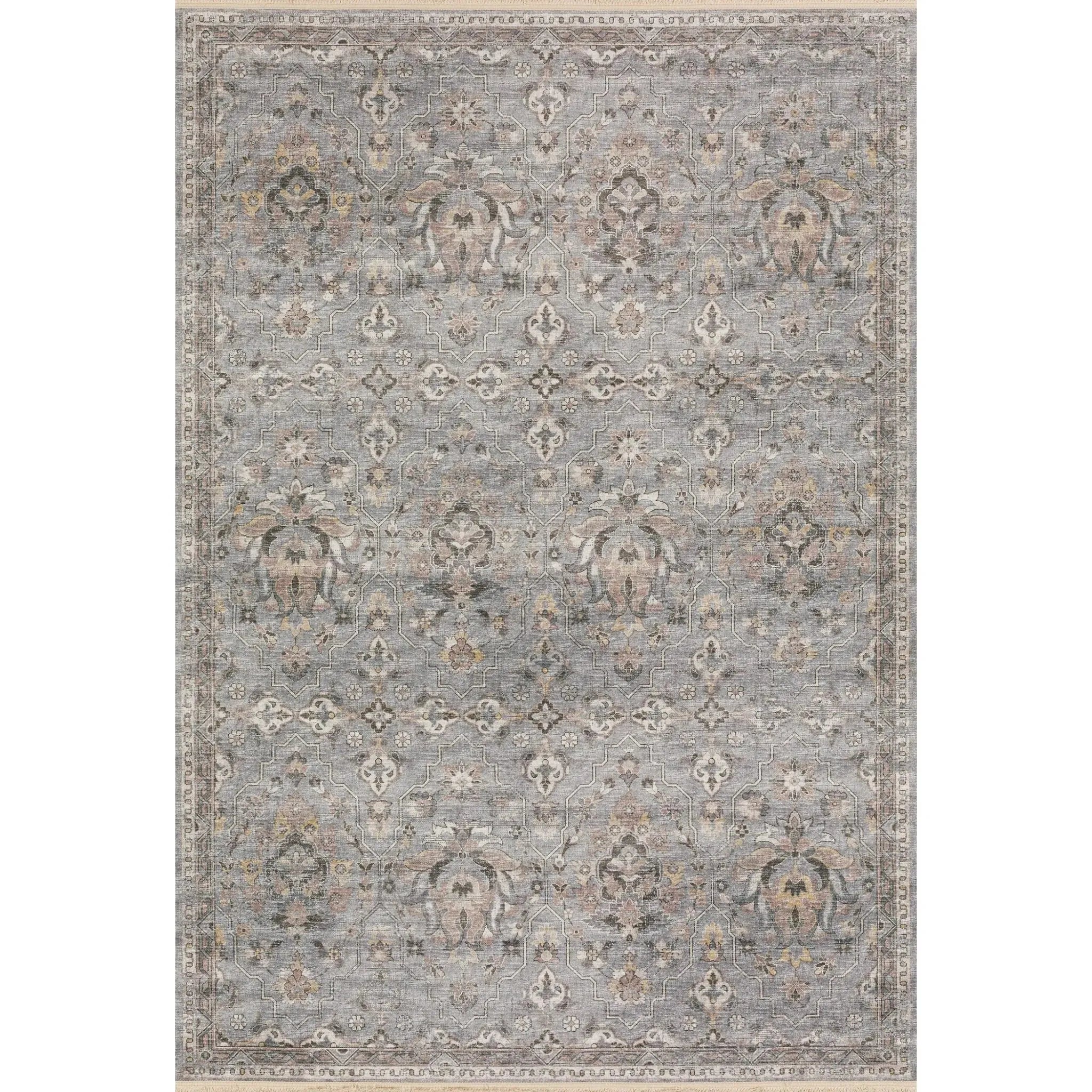 The Parisa PSA06 Denim/Multi Rug comes in various sizes, including 2x10, 5x7, 8x10, 8x11, 9x13, and 12x15 feet, accommodating different room dimensions.