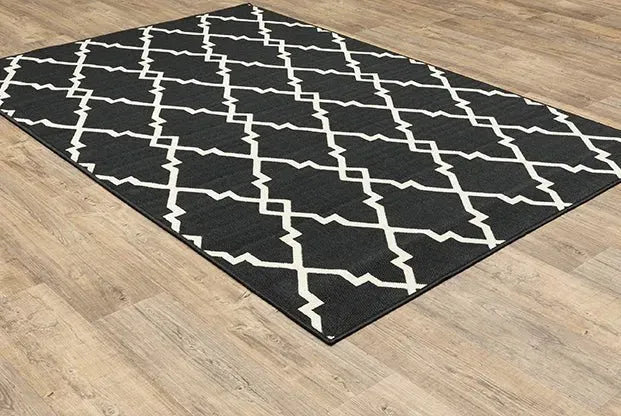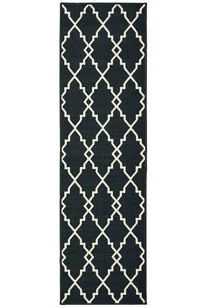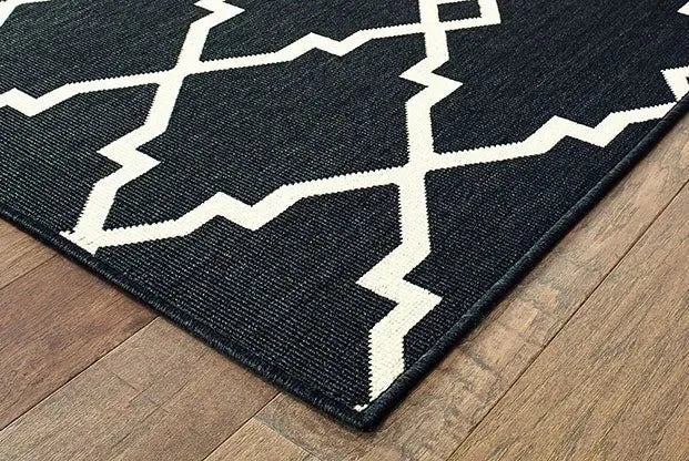 Marina is an elegant new introduction for indoor or outdoor use and features a 100% polypropylene looped yarn made in Egypt. It features a classic neutral palette using high contrast colors like black, ivory, deep navy, sand and cool gray. The collection includes casual but sophisticated patterns like updated geometrics and simplified traditionals that all feel fresh but timeless.
