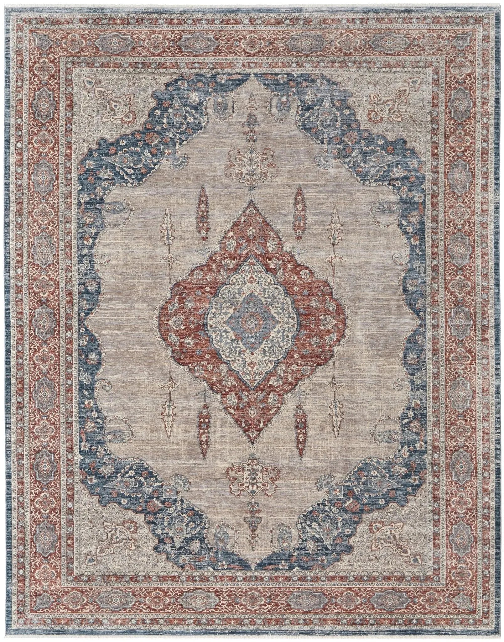 From cottage to mansion from loft to palace Marquette is certain to gracefully adorn any abode with a flourish of casual grandeur. Traditional Persian motifs are rendered elegantly in space-dyed tones of denim sky and rust amid a background of enchanting and versatile neutrals. The look and feel of a rustic heirloom is now effortlessly attainable when luxury styling meets modern technology. Marquette is a collection sure to please both connoisseur and consumer alike.