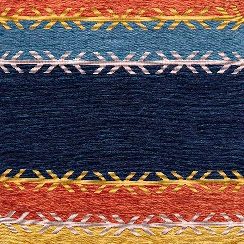 The Parisa PSA06 Denim/Multi Rug comes in various sizes, including 2x10, 5x7, 8x10, 8x11, 9x13, and 12x15 feet, accommodating different room dimensions.