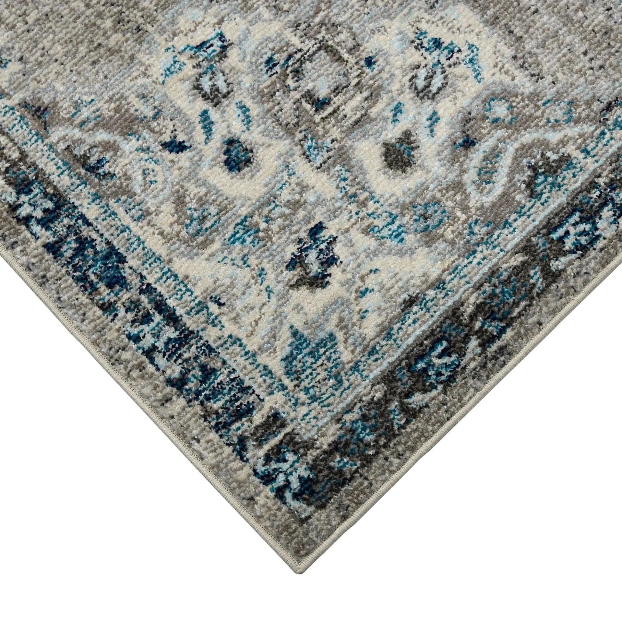 The Parisa PSA06 Denim/Multi Rug comes in various sizes, including 2x10, 5x7, 8x10, 8x11, 9x13, and 12x15 feet, accommodating different room dimensions.