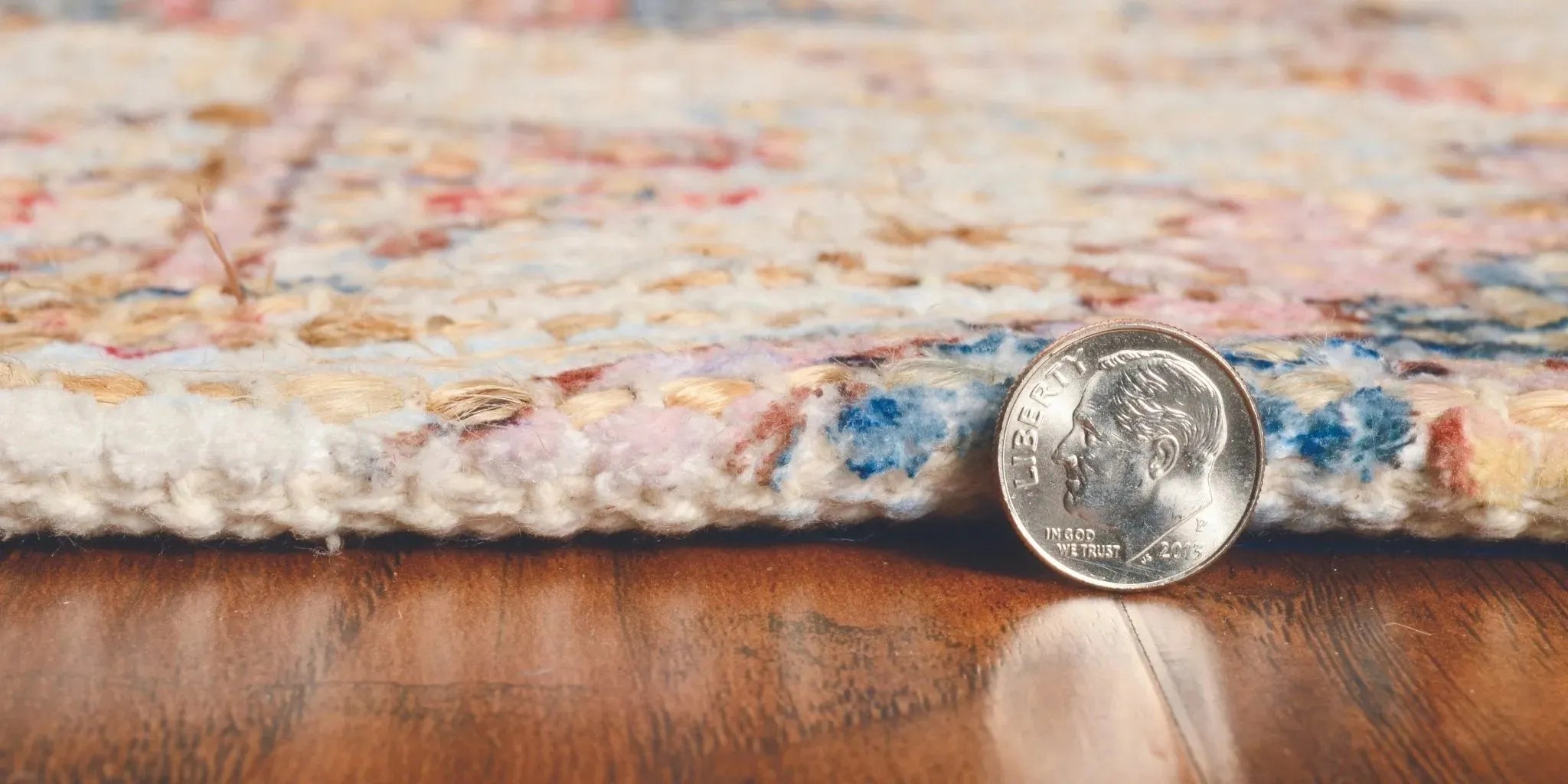The rug features a loom-woven pile with a thickness of 0.50 inches, providing a plush and comfortable underfoot experience.