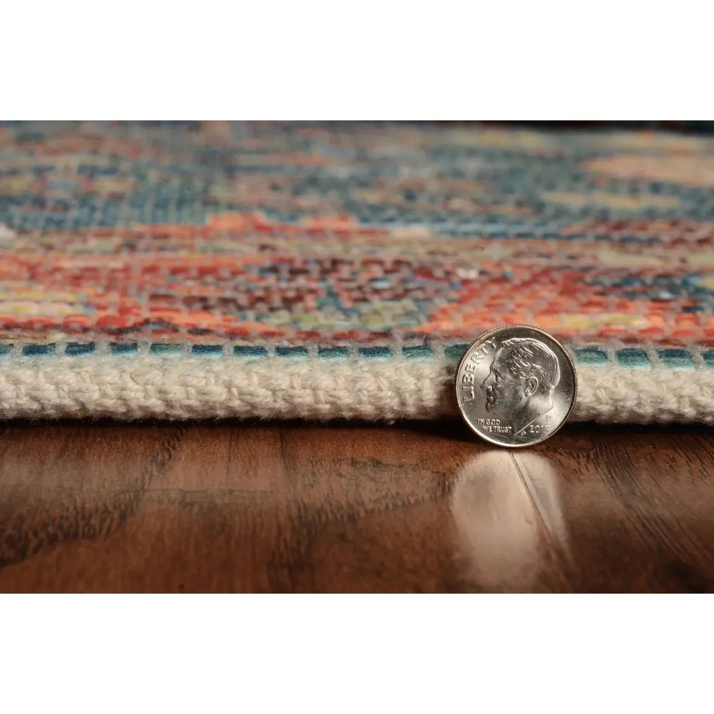 The Parisa PSA06 Denim/Multi Rug comes in various sizes, including 2x10, 5x7, 8x10, 8x11, 9x13, and 12x15 feet, accommodating different room dimensions.