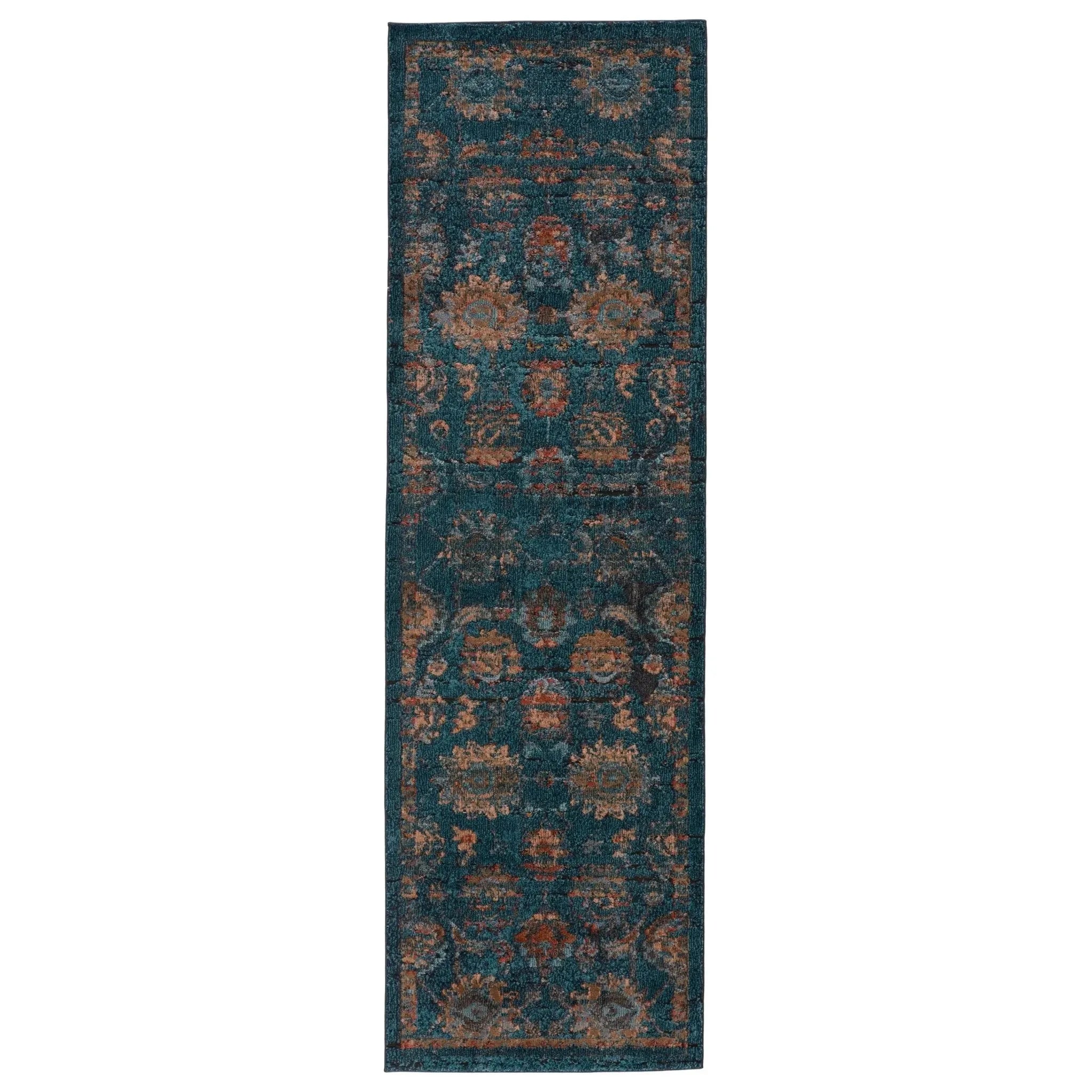 The rug showcases an exceptional Persian floral design with curvaceous leaves, bright blossoms, and other classic botanical motifs, bringing vivid energy to your living space.