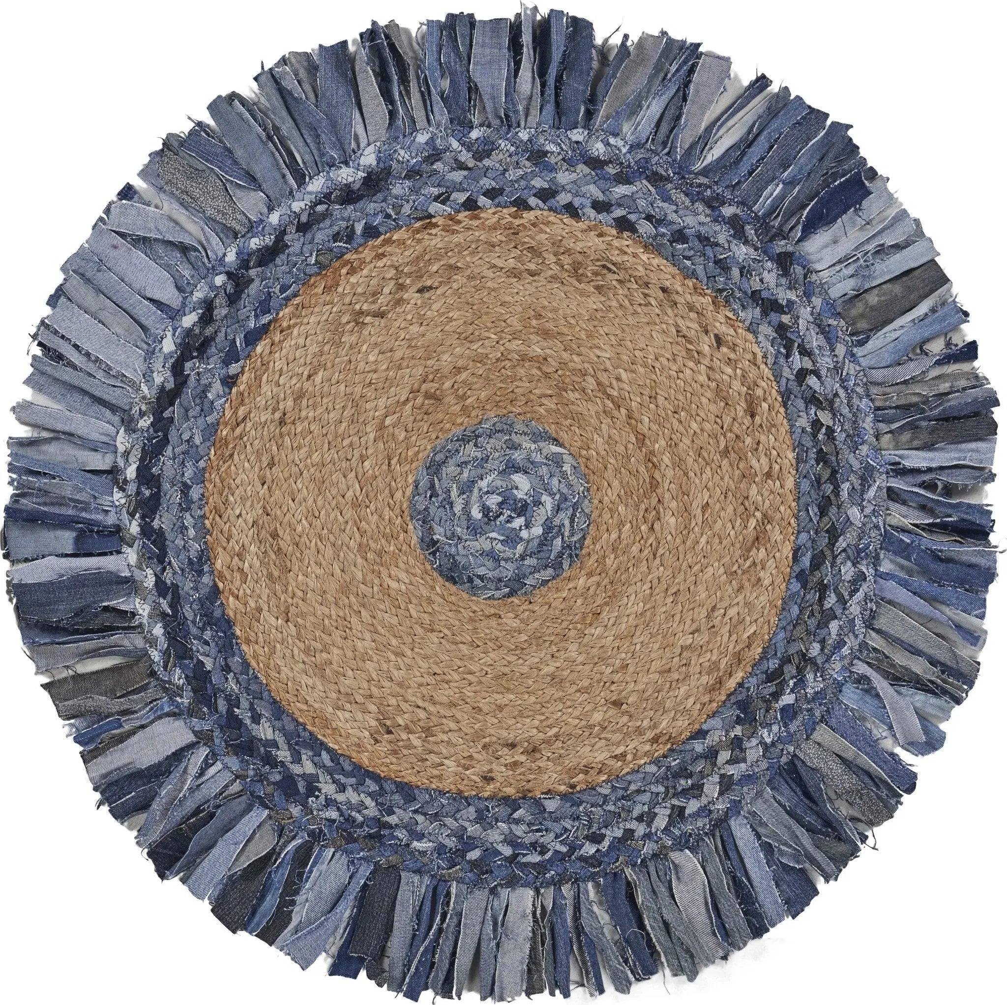 This beautiful round rug features a delightful mix of natural hues and denim blues. The fringed edges also provide wonderful texture to the piece. Hand braided from the natural jute and recycled denim of India, this piece is handcrafted for your home with delicate skill found in every inch. How could you not adore this style? Bring it home today for a spectacular new addition to your space!