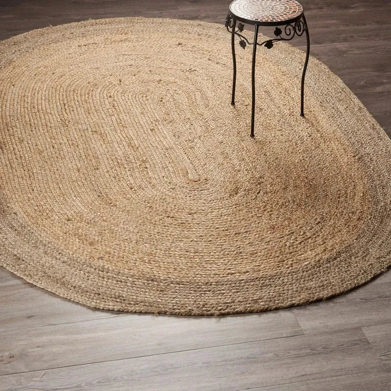 Natural Jute rugs give any room a casual feel with style that is understated and environmentally friendly. The braided 100% jute construction makes each piece naturally anti-static, insulating and moisture regulating, perfect to fit under a dining room table or coffee table or anywhere you wish to add a natural element to your decor. This rug is perfect for your living room, dining room, den, bedroom, or any living space.