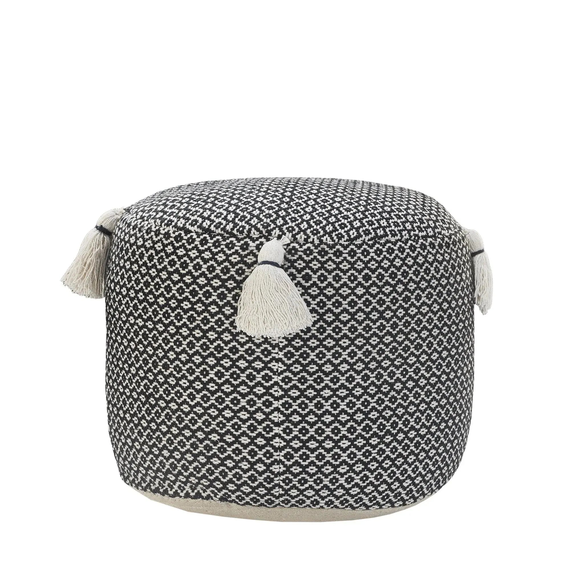 Designed to provide your space with versatility and style, our handcrafted pouf collection is the perfect addition for functional, fashionable living. Constructed by meticulous craftsman in India, this cotton pouf features an intricate geometric motif and textured tassels for a modern must-have. Bring this pouf home today for a practical accent to tie your decor together. This pouf is suited for indoor usage.
