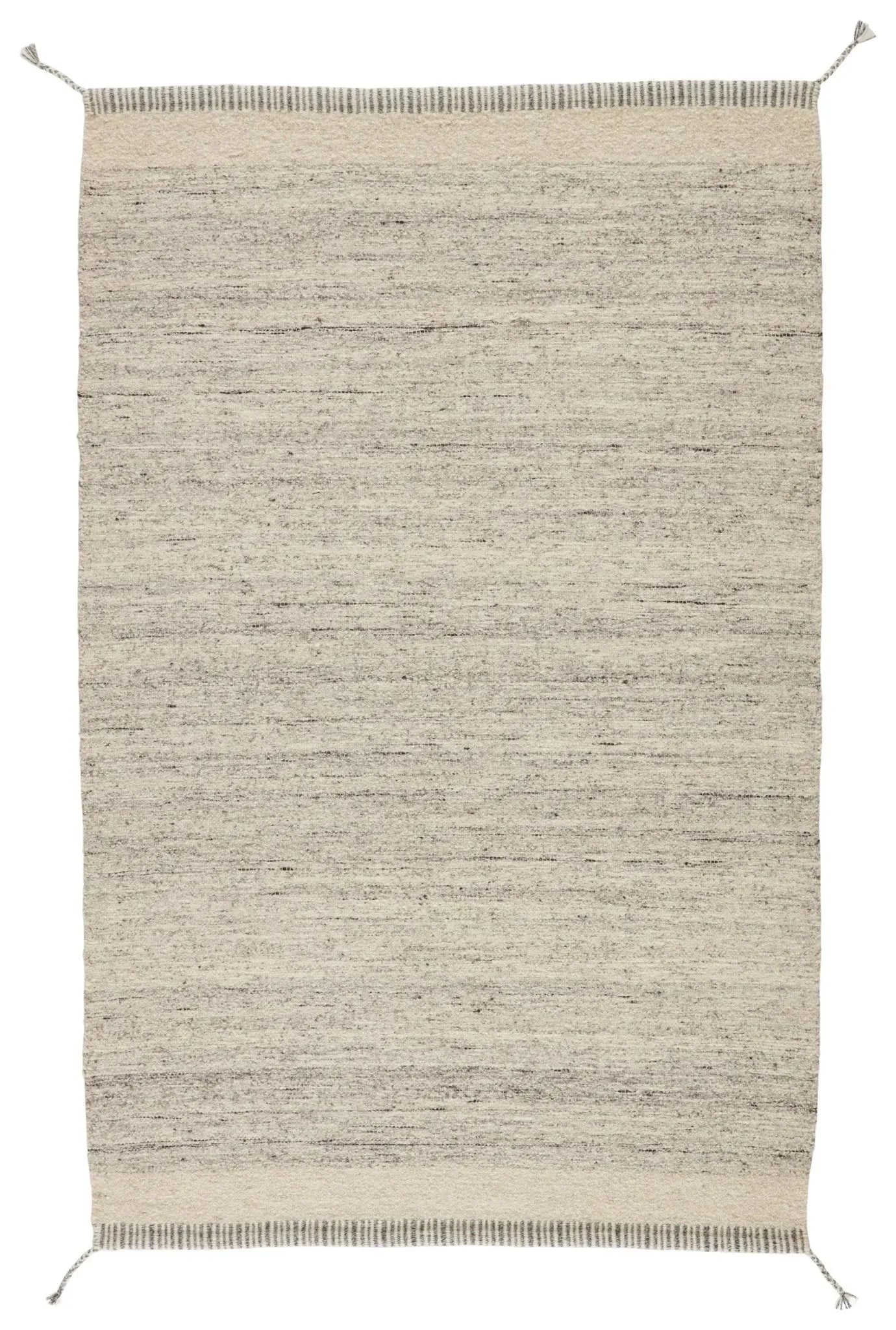 West Coast minimalism has a shearling, cozy moment with the Nazca collection. Hand-loomed of texture-rich wool, the Gila rug boasts a gray and ivory colorway that lends versatility to the simple yet statement-making heathered design. A linear border with braided tassel details on each corner add a touch of whimsy and global appeal to this handwoven rug.