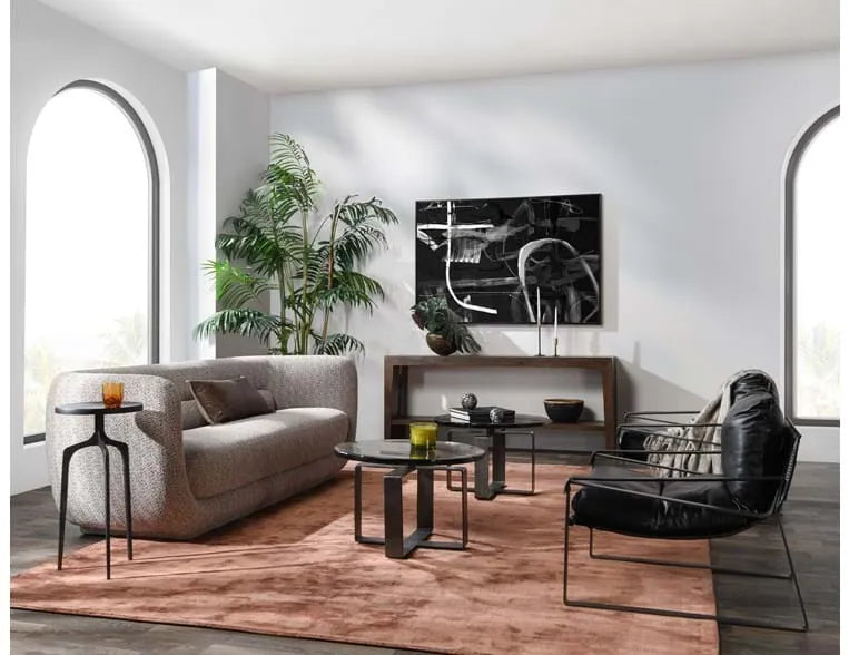 The Nico Sofa in rich polyester fabric exudes timeless charm with its sleek tuxedo arms, soft curves, and graceful rounded edges. The minimalistic design adds effortless elegance, making it the perfect piece to enhance the atmosphere of any room. Its refined yet inviting presence creates a cozy, intimate space for relaxing or sharing quiet moments, offering both comfort and style in a beautifully understated way.