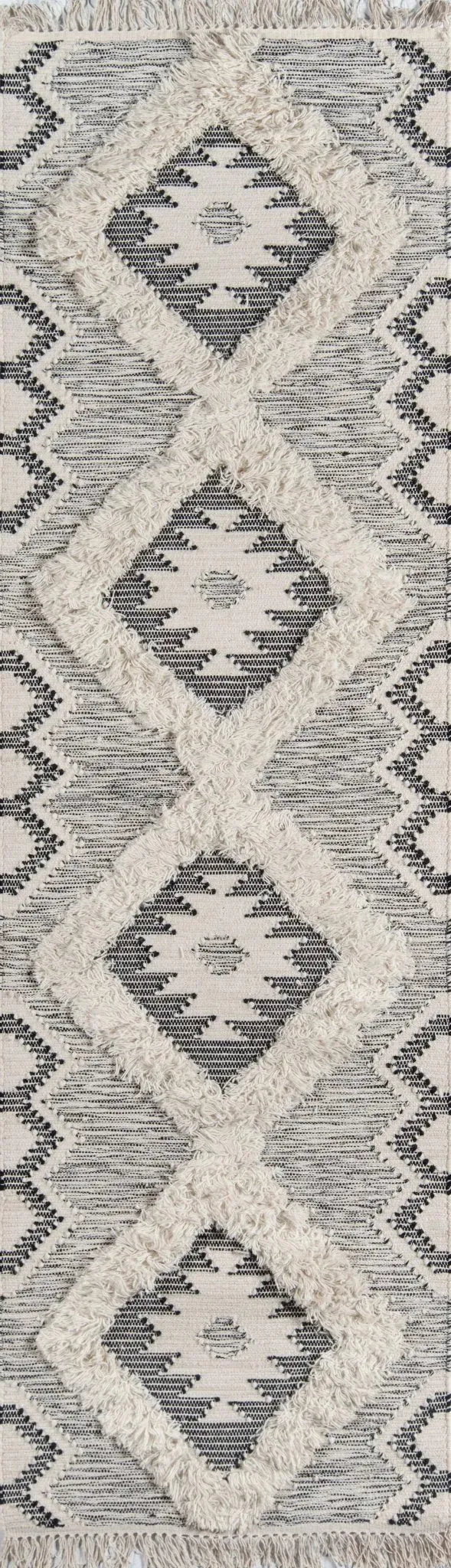 Southwestern-style influences within this handmade area rug collection makes interior floors instantly feel like home. Artful detailing throughout each floorcovering honors the legacy of tribal handicrafts using a distinctive combination of cut and looped wool fibers to define each exotic geometric pattern. Repeating diamond shapes, stripes, triangles and pyramids get a burst of boho chic in shades of pastel pink, sky blue, gray and gold with shaggy accents that emphasize the high-low profile and textural variation underfoot. A signature addition to the Novogratz by Momeni collection, each rug reflects the brandåÕs commitment to creating boutique-worthy home accents with an eclectic attitude thatåÕs accessible for everyday living. This rug is perfect for your living room, dining room, den, bedroom, or any living space