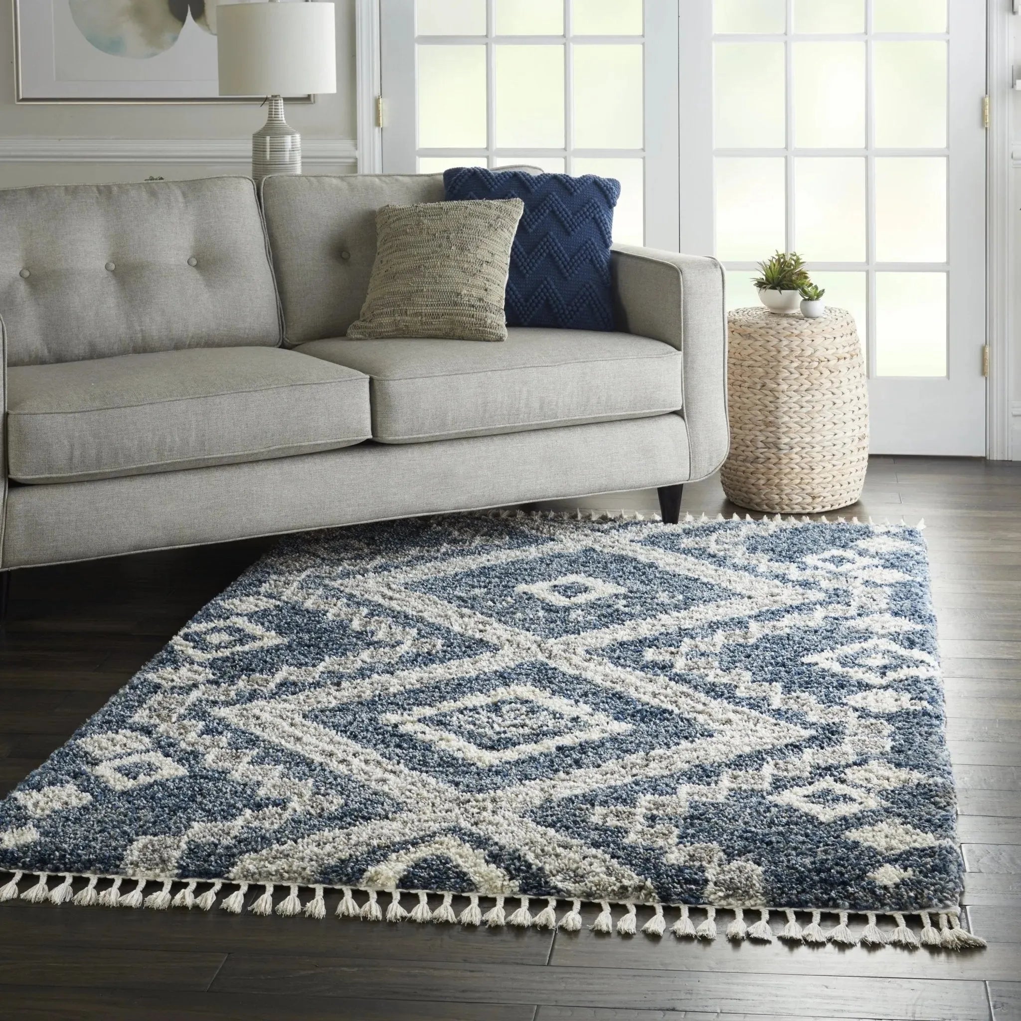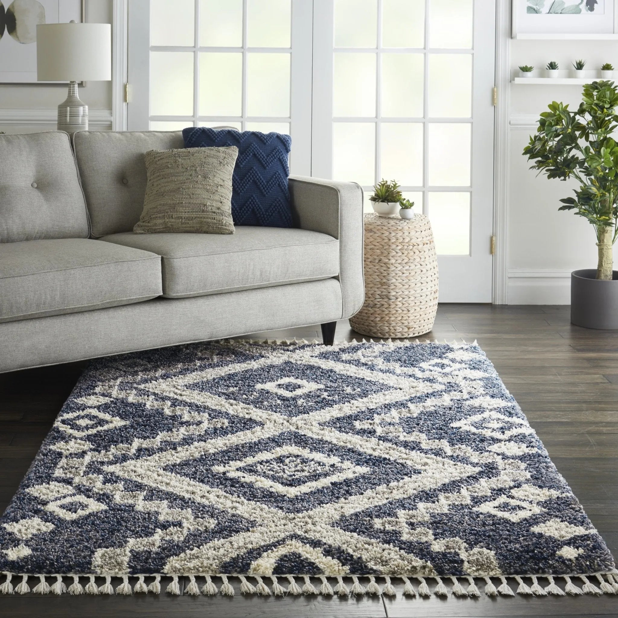 With contemporary hues and clean lines, Nourison's Oslo Collection reflects a Scandinavian influence in these plush shag rugs. These thick, inviting rugs feature easy-care fibers with twisted fringe finish for an authentic tribal look and feel, featuring lattice and diamond designs in rich greys and soothing neutral colors. Each rug adds a layer of warmth and welcome to any space in your home. This rug is perfect for your living room, dining room, den, bedroom, or any living space.