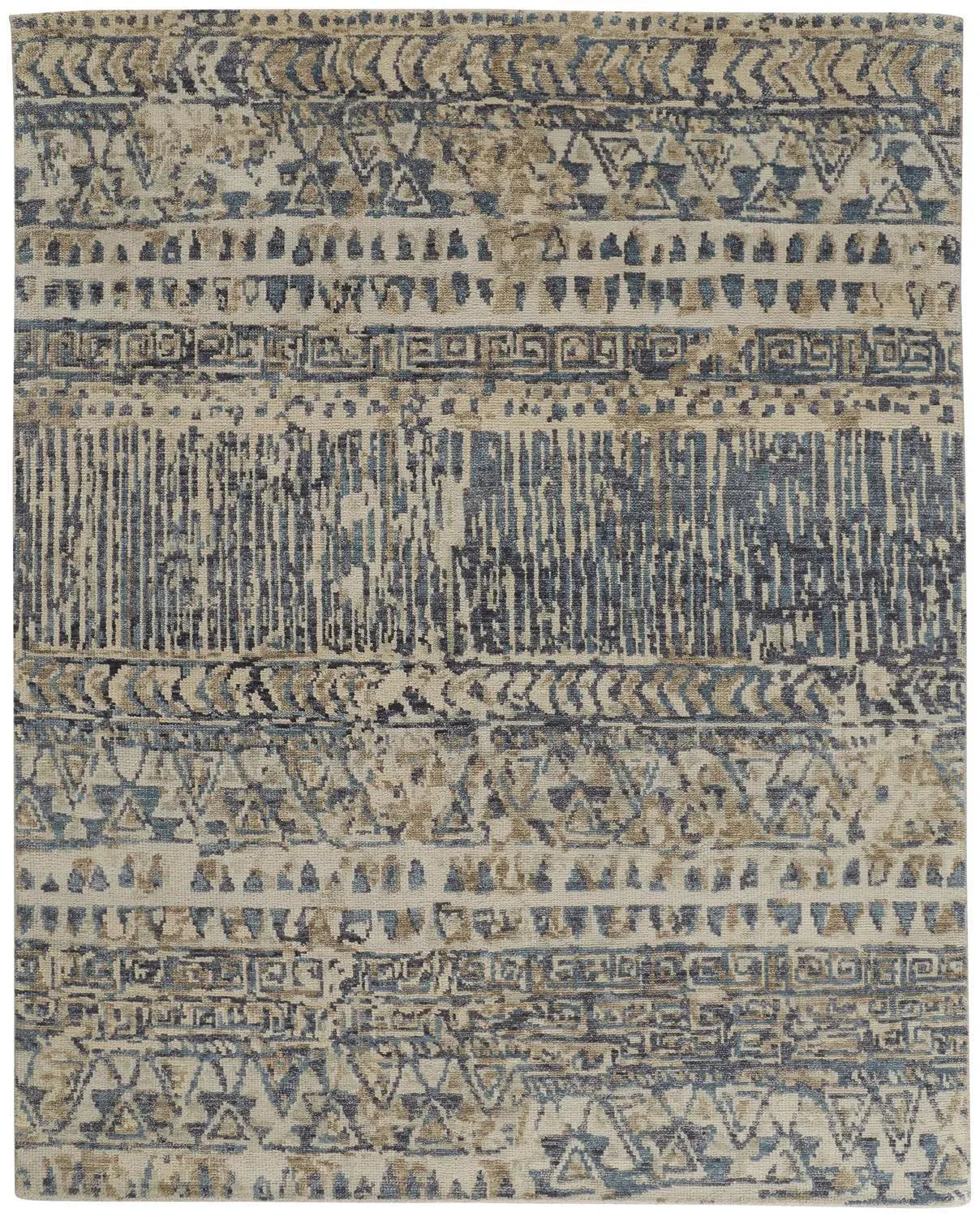 The essence of Palomar is its meticulously hand-knotted designs that seem completely improvised. The hand-drawn geometry and delightful asymmetry are reminiscent of the woven handiwork of various traveling cultures. Beautifully versatile shades of ink charcoal silver and denim are accented with ivory warm beige and cocoa. These colors vary further within the abrash to create a faded stone-washed look. Palomar combines the integrity of a tribal heirloom with a fresh perspective to fit todays aesthetic. Find the modern nomadic treasure you seek with the Palomar collection.