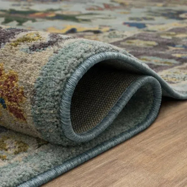 The Parisa PSA06 Denim/Multi Rug comes in various sizes, including 2x10, 5x7, 8x10, 8x11, 9x13, and 12x15 feet, accommodating different room dimensions.