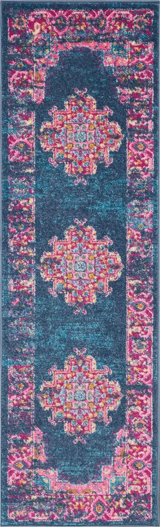 The Parisa PSA06 Denim/Multi Rug comes in various sizes, including 2x10, 5x7, 8x10, 8x11, 9x13, and 12x15 feet, accommodating different room dimensions.
