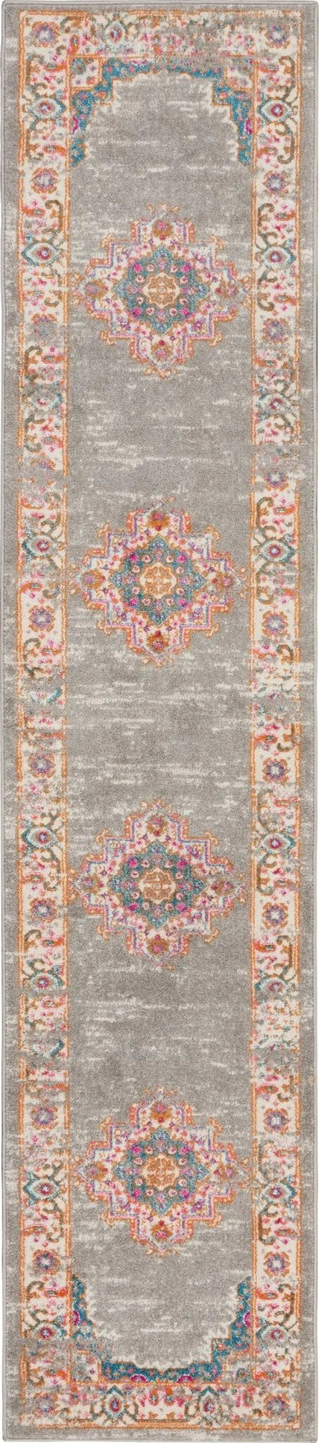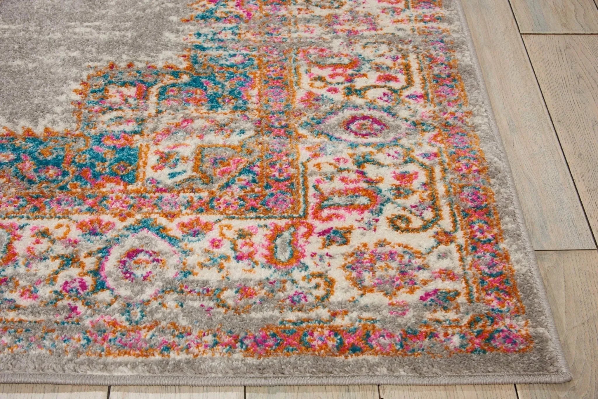 The Parisa PSA06 Denim/Multi Rug comes in various sizes, including 2x10, 5x7, 8x10, 8x11, 9x13, and 12x15 feet, accommodating different room dimensions.