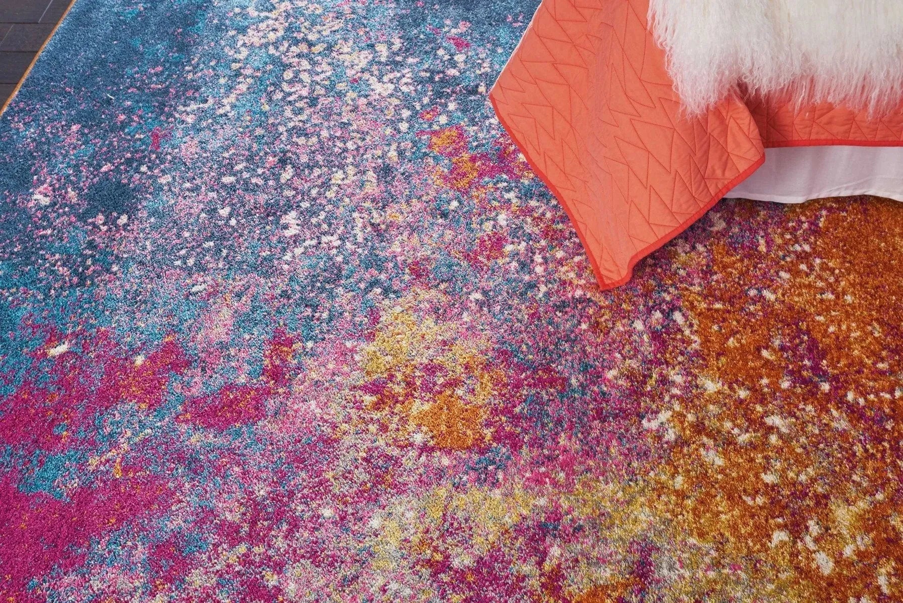 The Parisa PSA06 Denim/Multi Rug comes in various sizes, including 2x10, 5x7, 8x10, 8x11, 9x13, and 12x15 feet, accommodating different room dimensions.