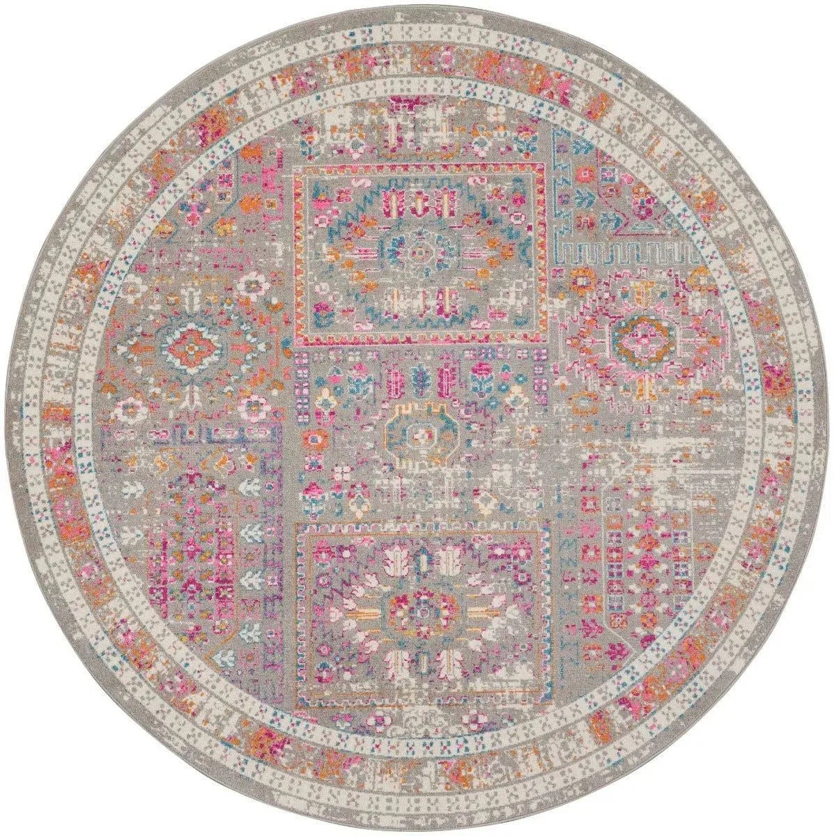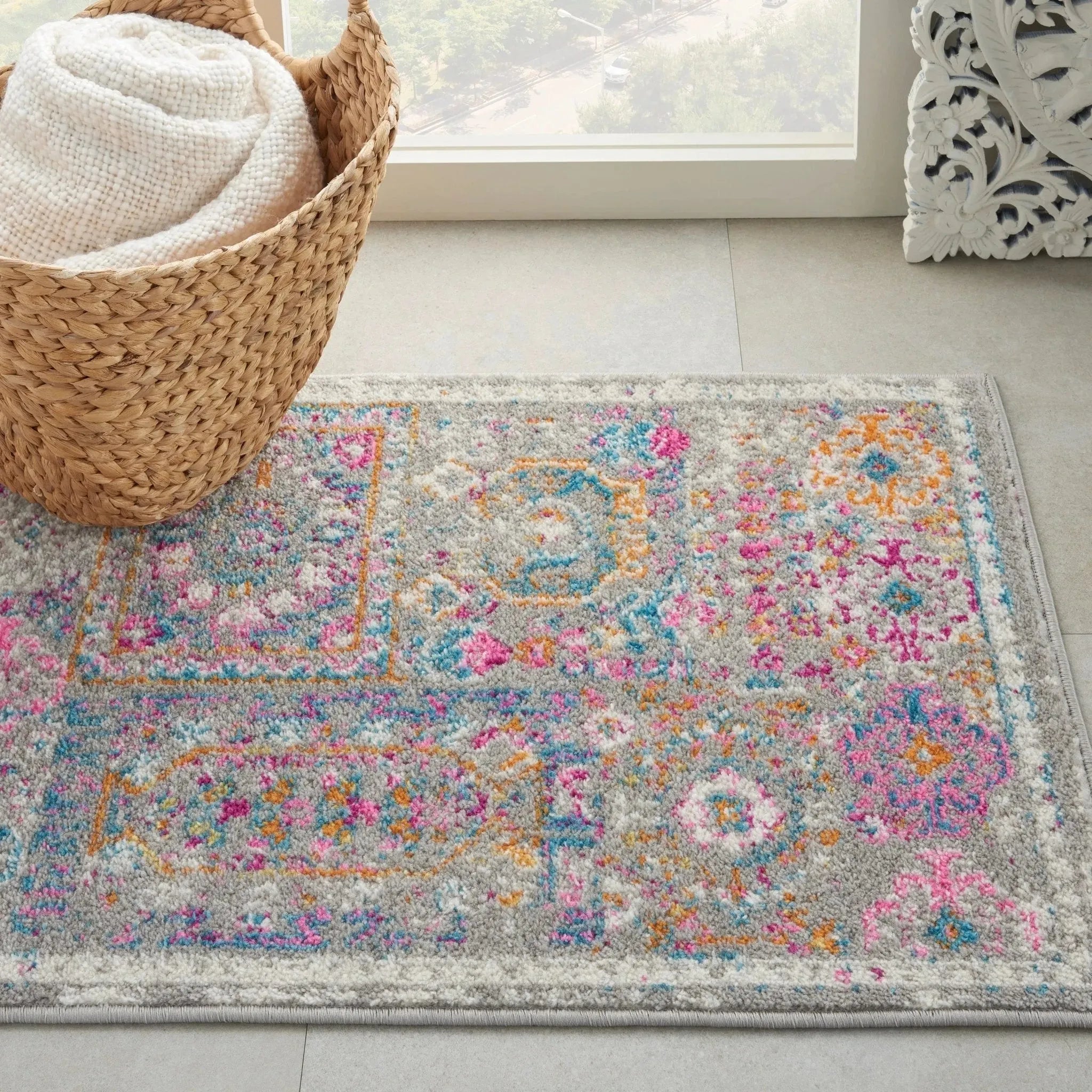The Parisa PSA06 Denim/Multi Rug comes in various sizes, including 2x10, 5x7, 8x10, 8x11, 9x13, and 12x15 feet, accommodating different room dimensions.