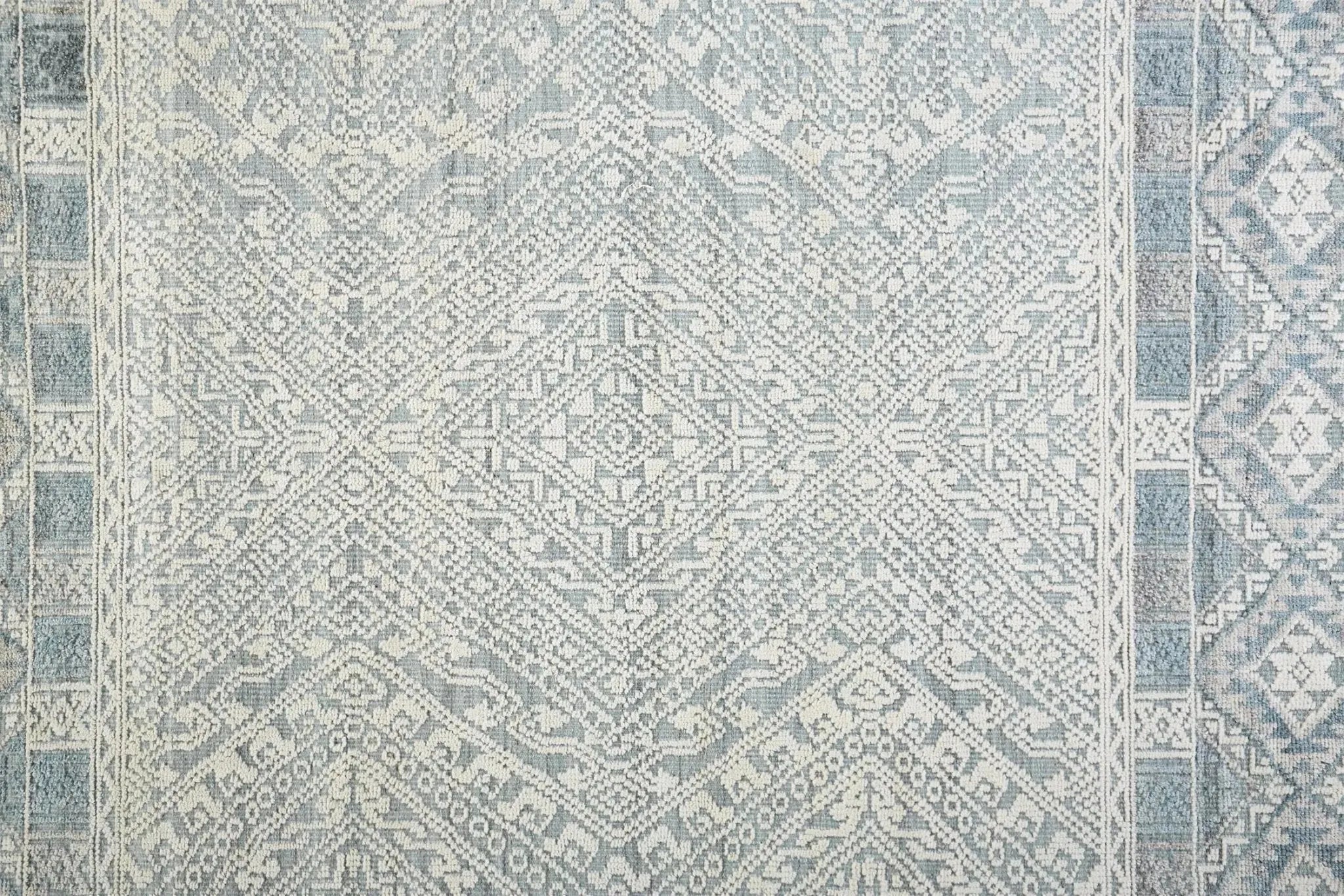 The trend-forward Payton Collection conjures the Global Nomad trend featuring tribal patterns in a fashionable palette of neutrals and blues punctuated by soft pastels. Hand knotted in pure wool a high/low pile lends each piece added dimension creating textural interest and updating treasured designs for today's living spaces.