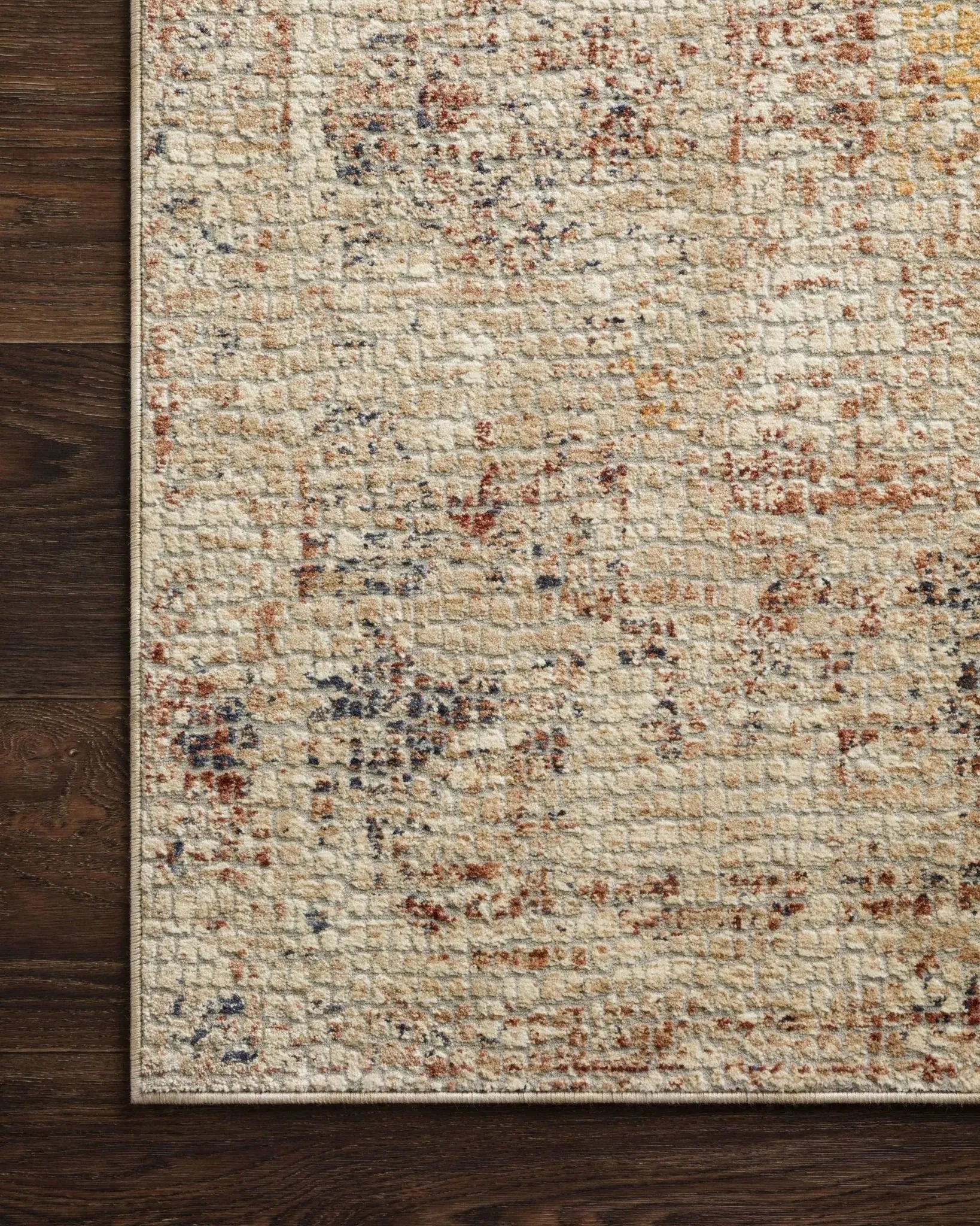 The Parisa PSA06 Denim/Multi Rug comes in various sizes, including 2x10, 5x7, 8x10, 8x11, 9x13, and 12x15 feet, accommodating different room dimensions.