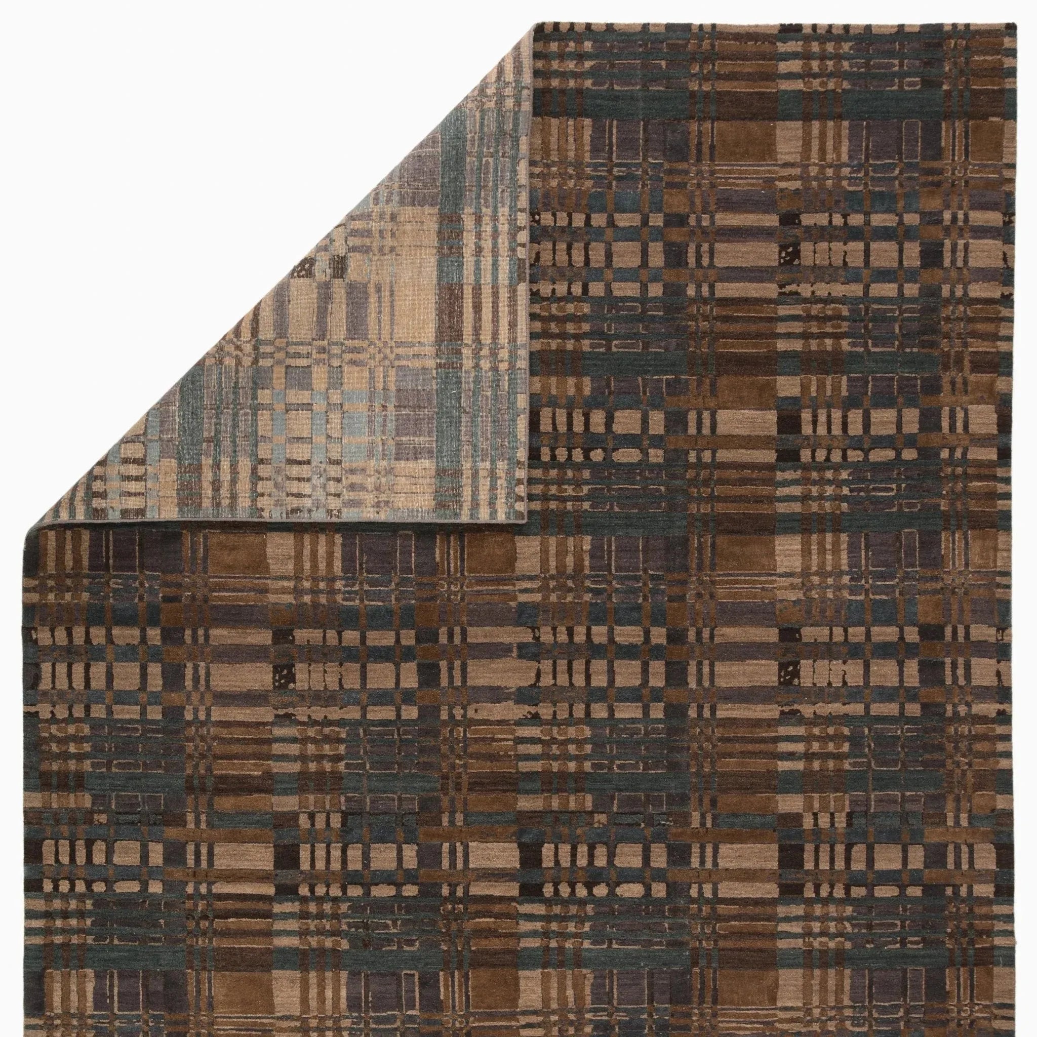 Steeped in both history and modern style, the Reconnext collection by Jenny Jones combines globally inspired motifs with on-trend colorways and re-imagined patterns. The Outlander design claims Scottish inspiration with an eclectic and statement-making tartan plaid motif. The deep palette of blue-green, gray, and tan creates captivating dimension on this natural wool and luxe silk hand-knotted rug.