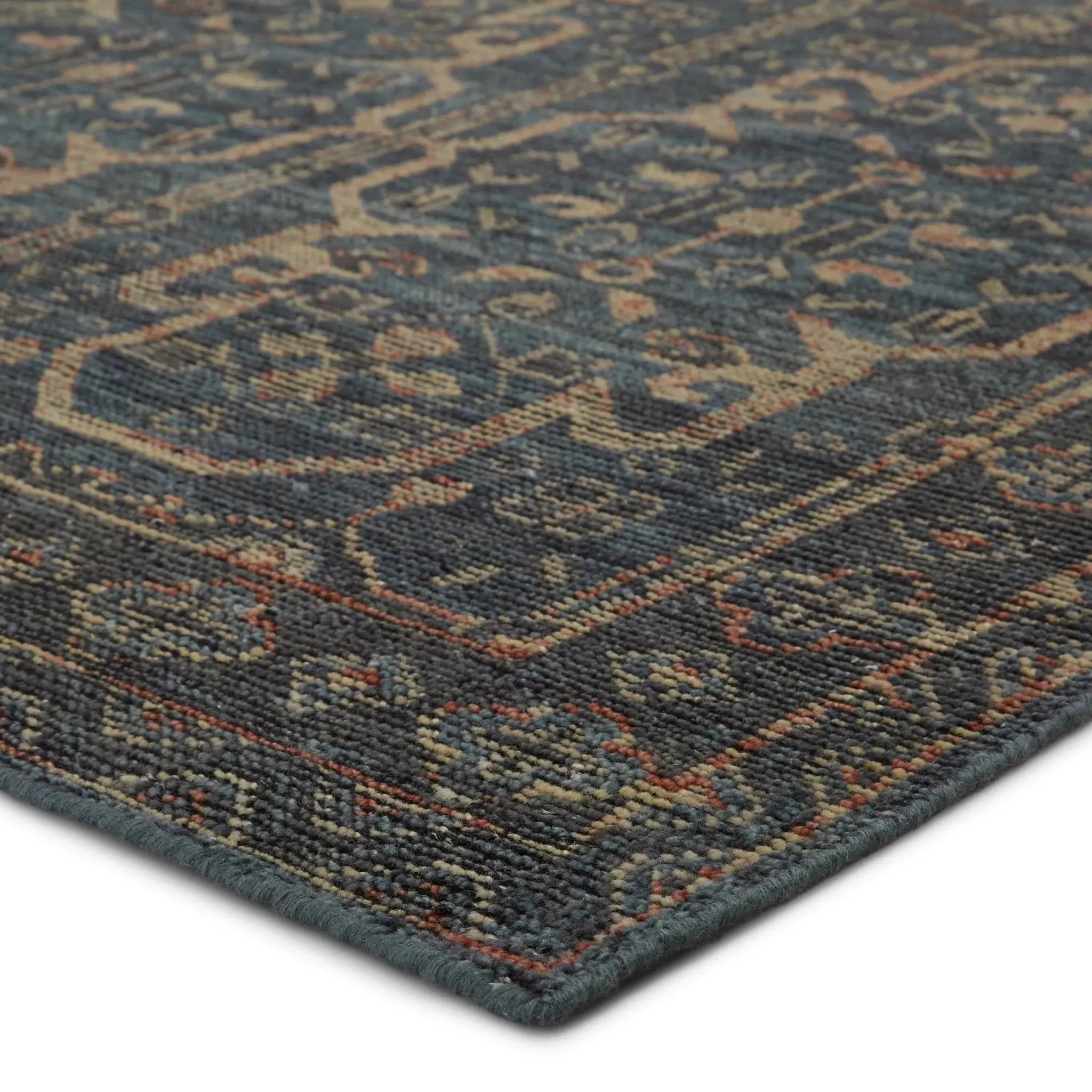 The Rhapsody collection features heirloom-quality designs of stunningly abrashed Old World patterns. The Reynir area rug boasts a beautifully washed tile-like motif with a decorative border detail. The deep blue palette is accented with red and cream hues for added depth and intrigue. Durable and exquisitely made, this hand-knotted wool rug anchors living spaces with a fresh take on vintage style.