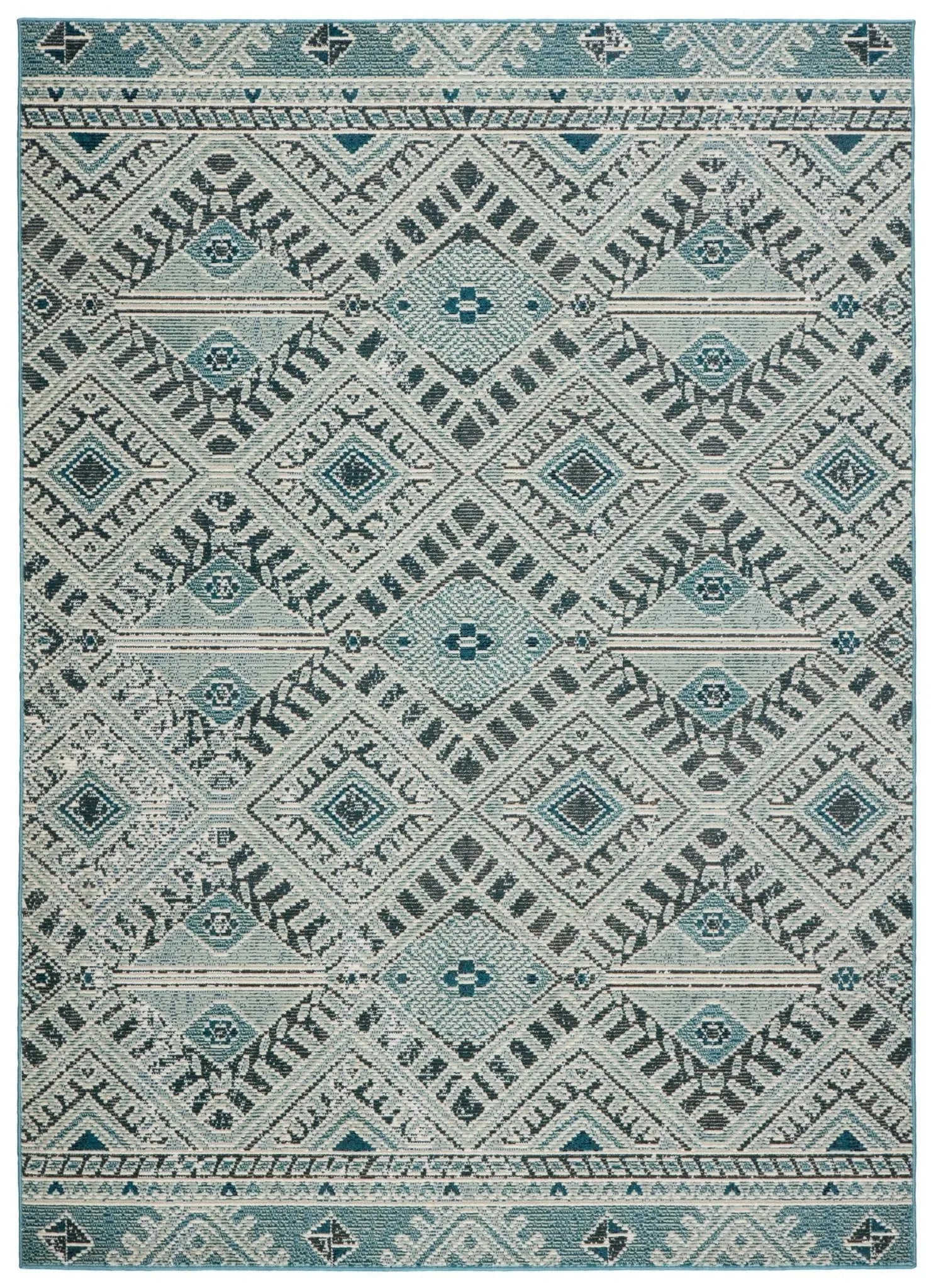Fun-loving and dynamic define the bright, boho designs the Rhythmik collection by Nikki Chu. The Sax area rug lends vibrancy and worldly style to indoor and outdoor spaces with a lively, tribal pattern in a vivid turquoise, brown, white, and cream colorway. Crafted of weather-resistant polypropylene, this contemporary rug boasts ribbed pile that emulates classic a hand-knotted construction.