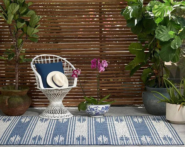 Think of the Riviera collection like the resort line for rugs. Sunny colors, breezy, oversized printsåÑtheyåÕre like a vacation from serious home decor pieces. The entire line is made from polypropylene, meaning theyåÕll work inside or outside, so your patios and porches can look as pretty as the rest of your home.