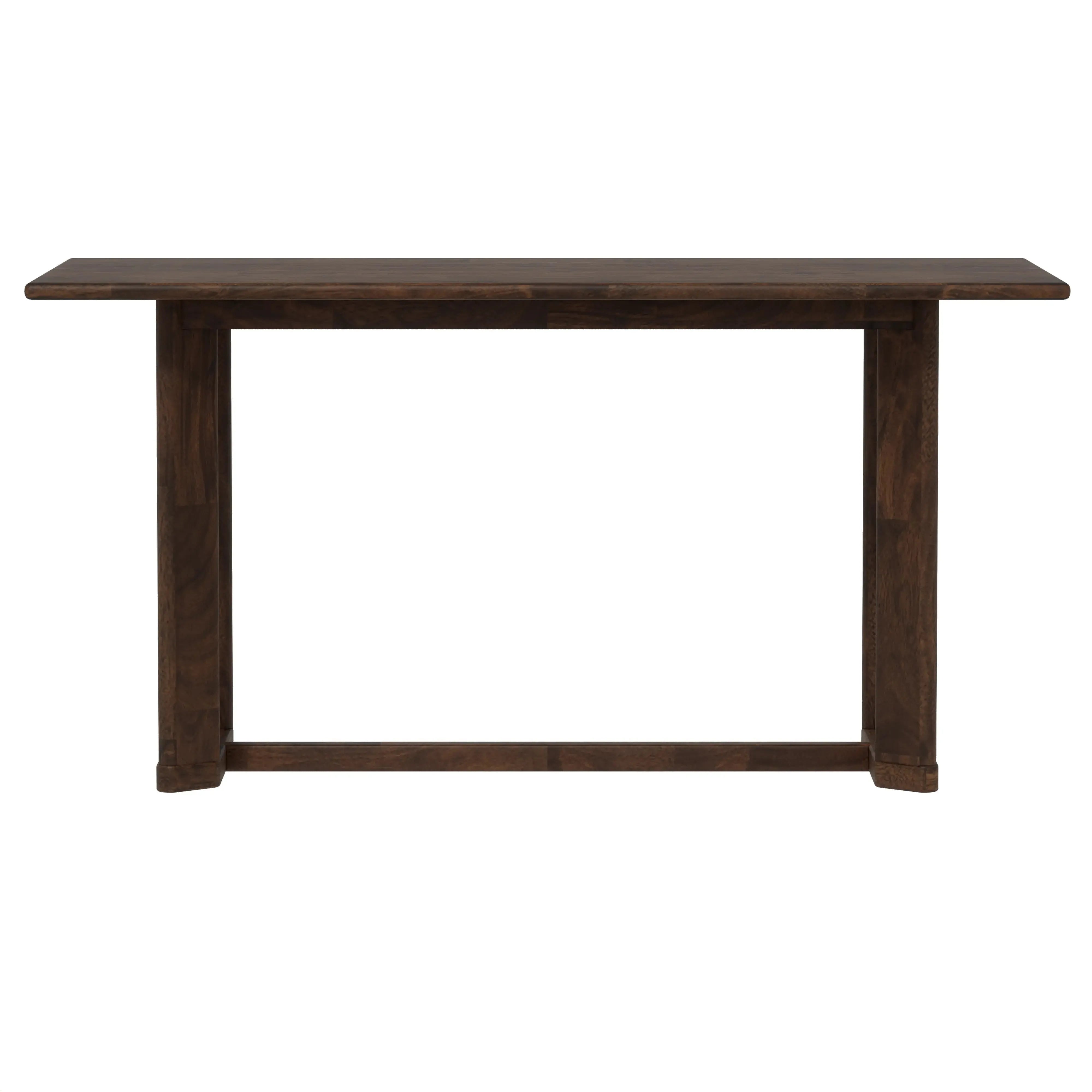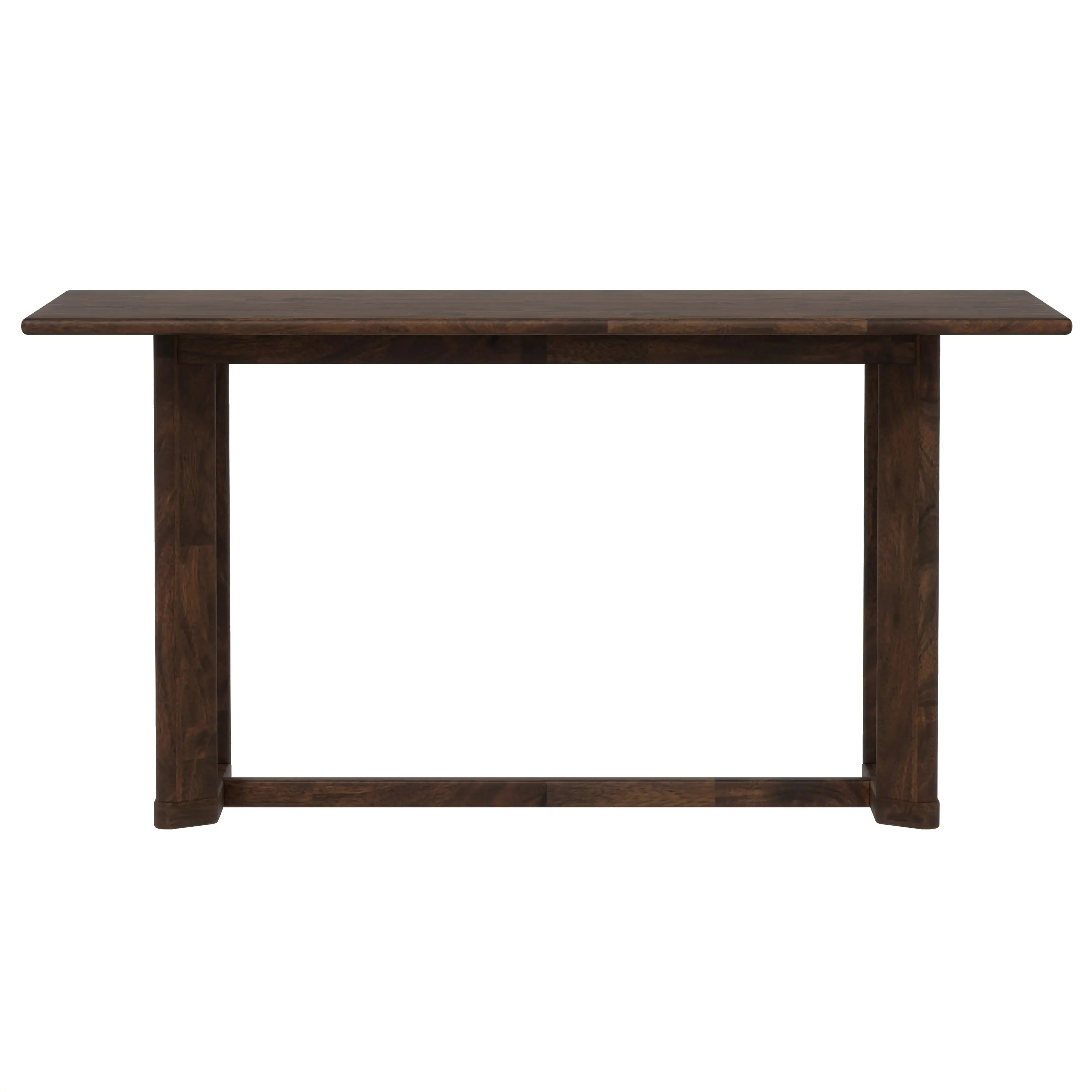 Sleek contemporary lines with intriguingly angled legs may catch your attention but the details of the Ronan collection will draw you in. Mango veneers applied over hardwood solids are polished off in a rich brown finish that flaunts the deep natural variations of the wood grain. Gently rounded edges pair with soft, textured fabric on the fully upholstered chairs and stools with tufting and exposed back frame details. In dining and gathering heights and a matching server, the Ronan collection proves that elevated and sophisticated can also be warmly inviting.