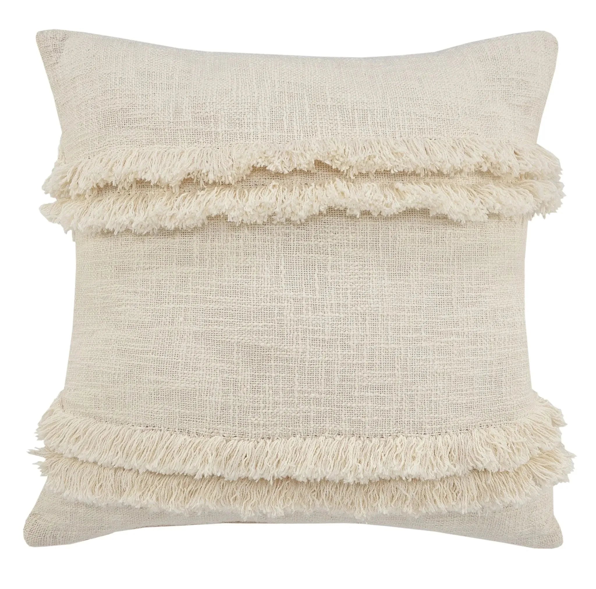 Designed to thrill, our pillow collection will add intricate mastery and eye pleasing designs to any room. This textured fringe throw pillow with a well-toned monochromatic cream hue is the perfect standalone accent or a great addition to a bohemian or farmhouse collection. Handcrafted with the customer in mind, there is no compromise of comfort and style with the pillow line we create.