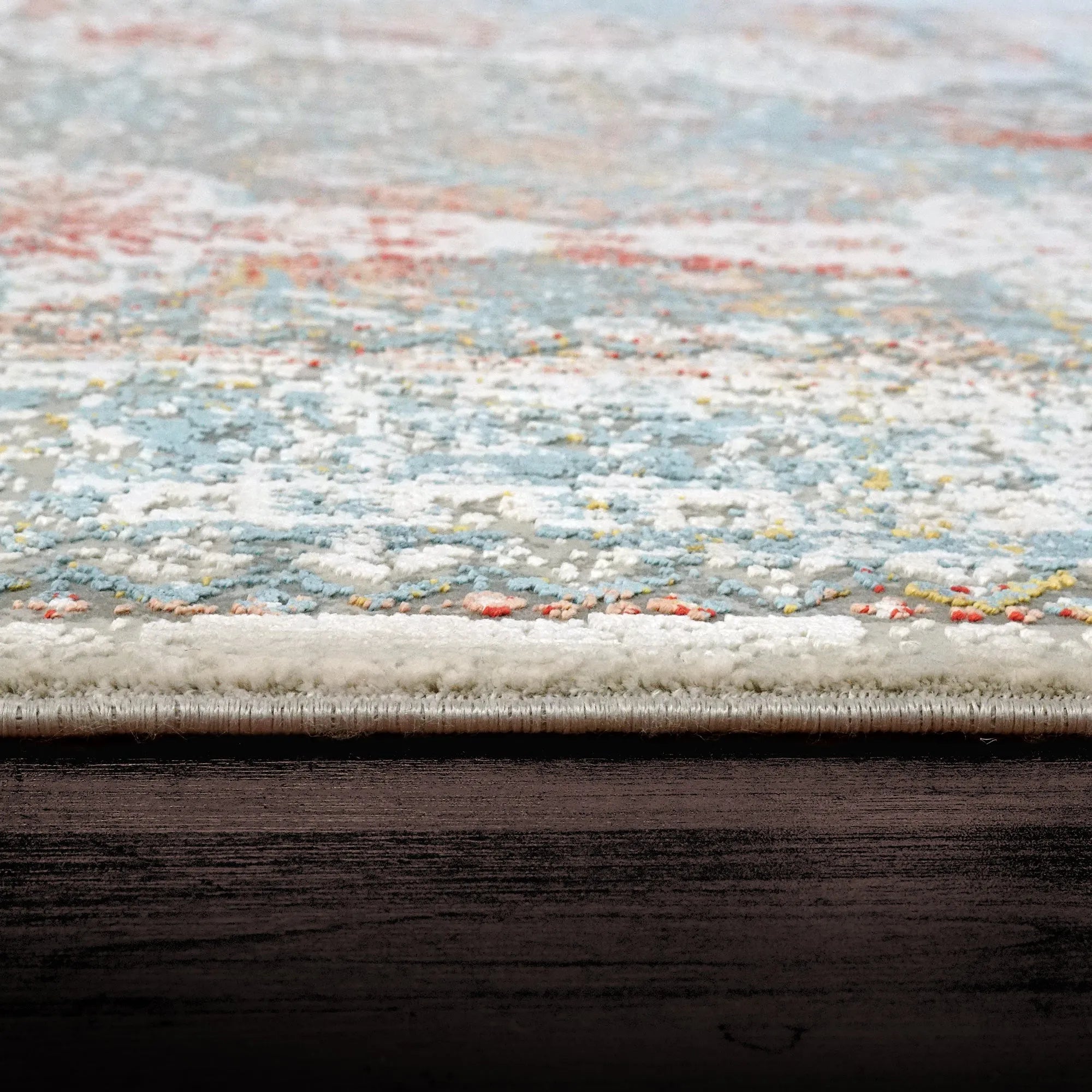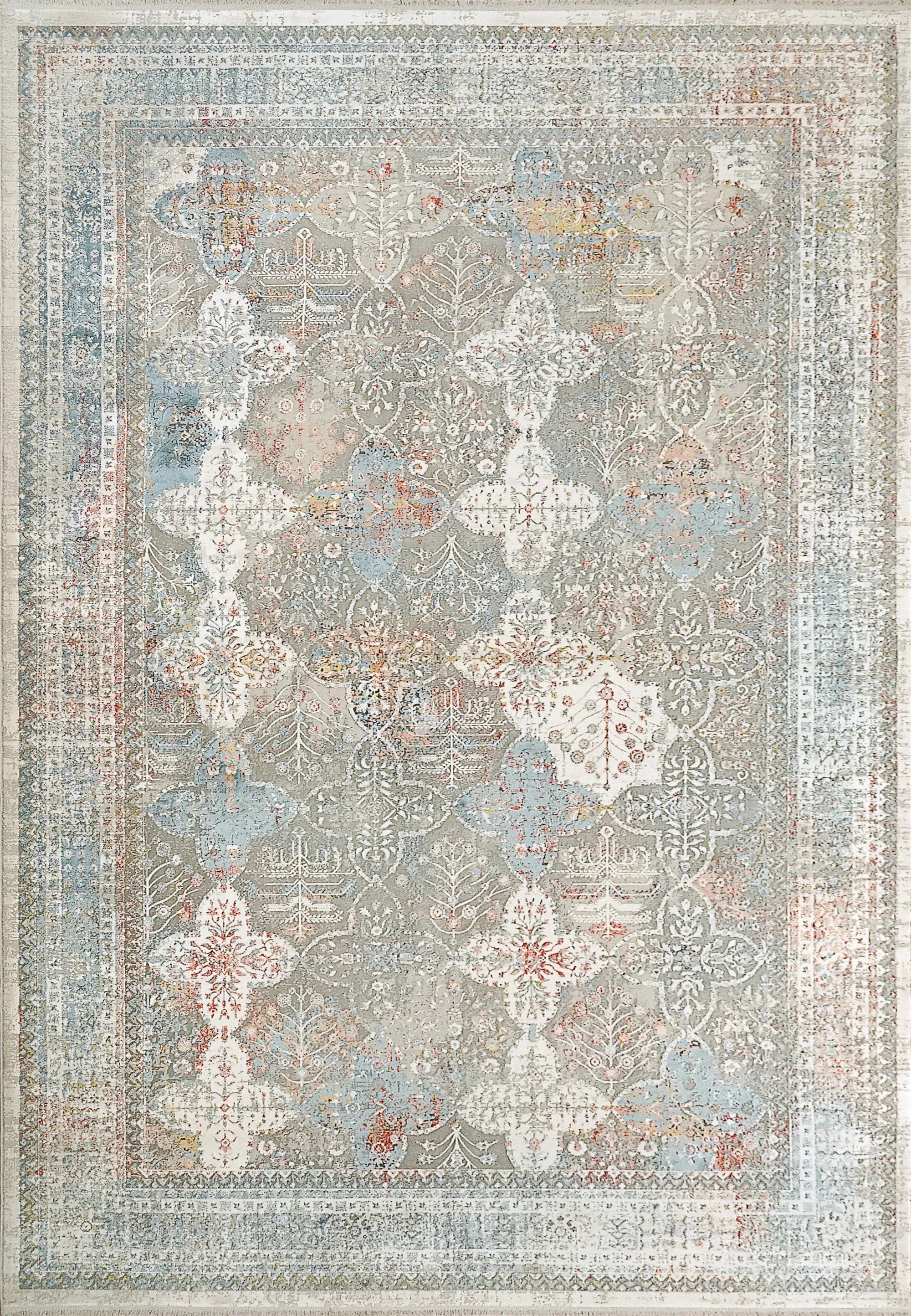 Ruby is made of Viscose and Shrink Acrylic, machine-made in Turkey. The construction and the intricacy of the design work give these rugs a true valuable handmade look with stunning traditional, abstract, and modern designs. The 2 million construction point creates a high-end look with soft hues of grey with pops of captivating blues and folds in its mosaic like texture.