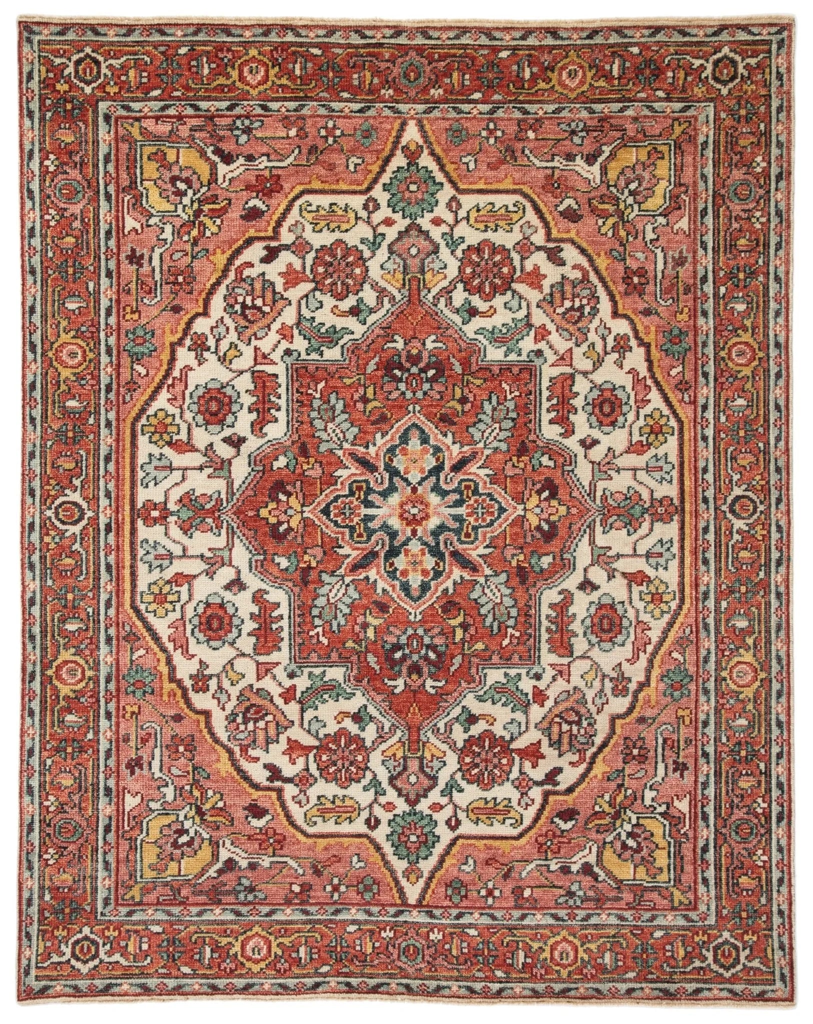 The Salinas collection is punctuated by vibrant hues and intricate details, bringing a bold, transitional look to any home. The feminine and fun Tavola rug makes a vivid impression with an ornate center medallion and accent floral design. Hand knotted of wool for timeless durability, this elegant accent's rosy color scheme is sure to enliven any bohemian living space.