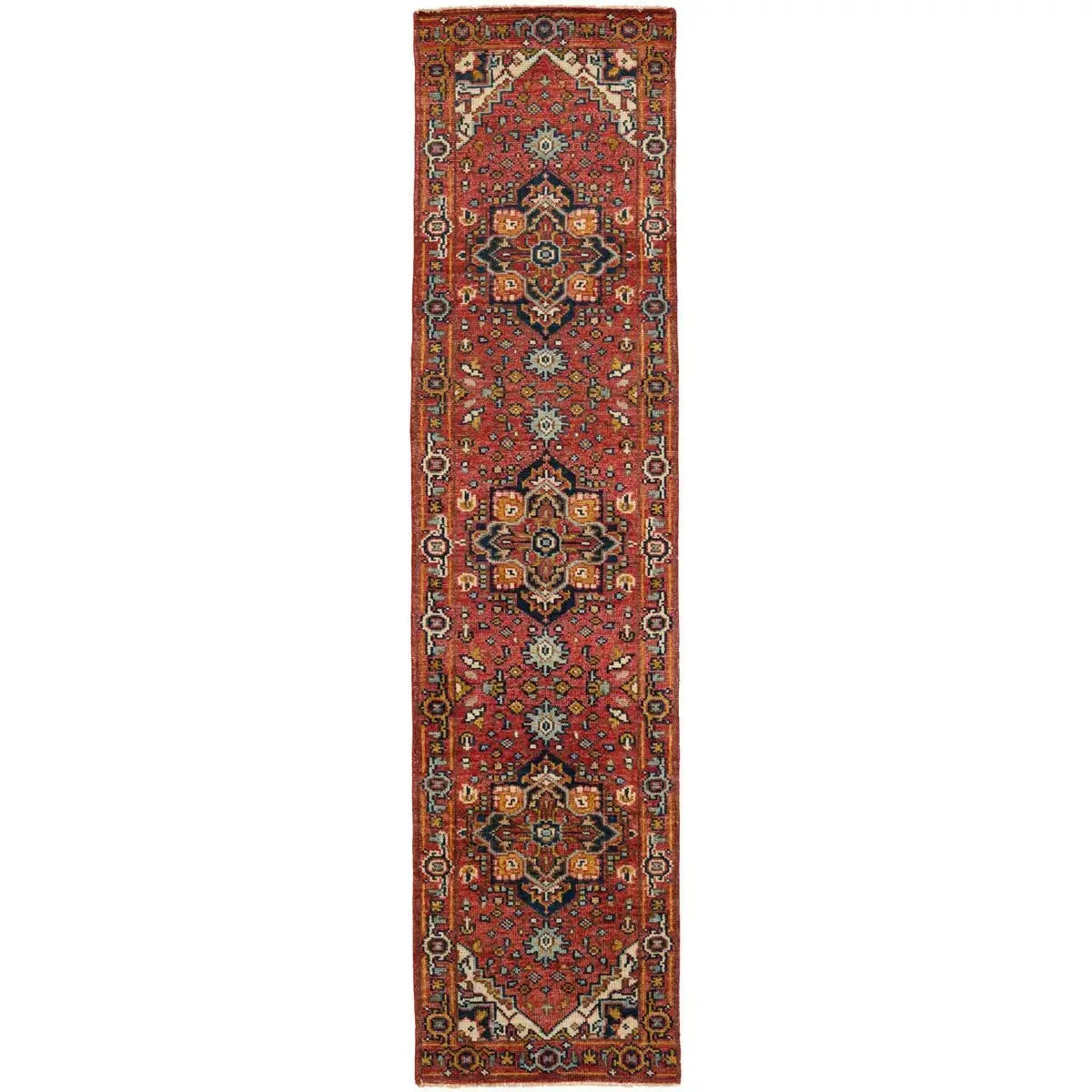 The Salinas collection is punctuated by vibrant hues and intricate details, bringing a bold, transitional look to any home. The hand-knotted Willa rug expresses classic, Serapi style with an intricate center medallion and surrounding border. Rich tones of blue and red ensure a timeless look, while the durable wool construction provide an heirloom-quality accent.