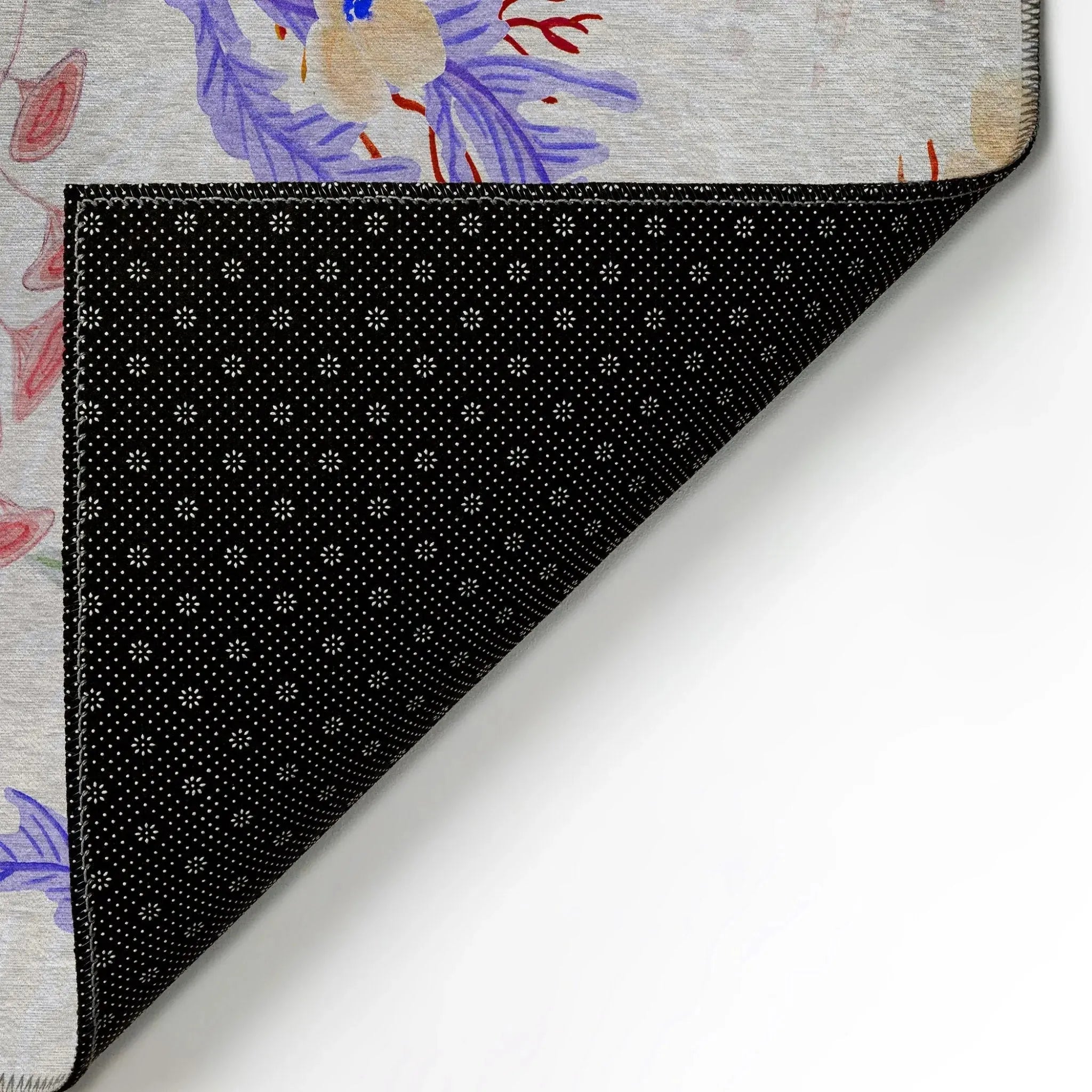 The rug showcases an exceptional Persian floral design with curvaceous leaves, bright blossoms, and other classic botanical motifs, bringing vivid energy to your living space.