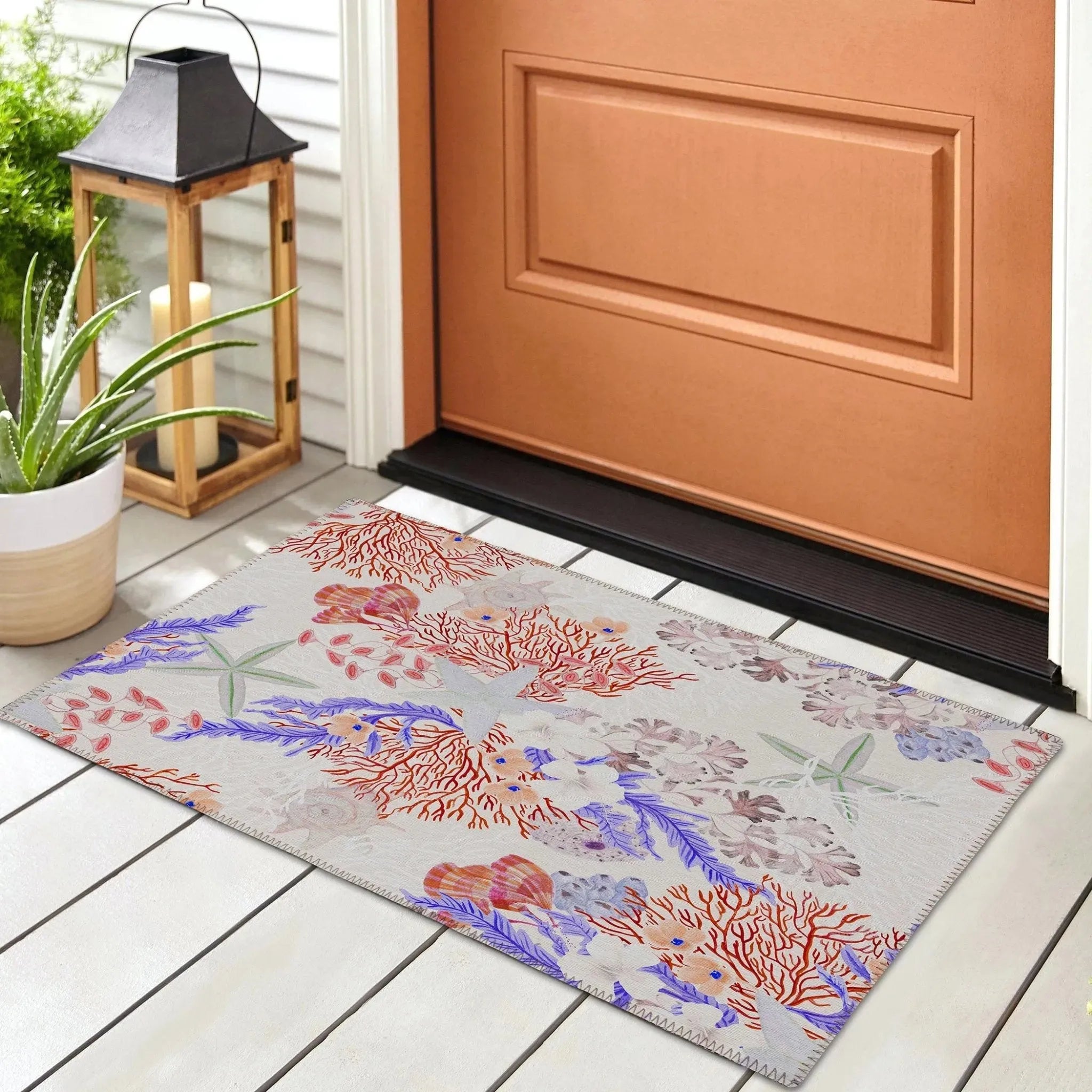 Remarkable Seabreeze collection has been created to inspire tranquility. Wow your guests with these versatile casual coastal rugs, stylish flat weave rug features vibrant colors with gradient movement in a variety of natural beach mosaic shapes and patterns. Featuring an ultra-soft and ultra thin pile, each rug is made with 100% polyester pile complete with a non-skid backing. Crafted in the USA using Foreign & Domestic materials and US labor. They are UV Stabilized for indoor and cover outdoor spaces.