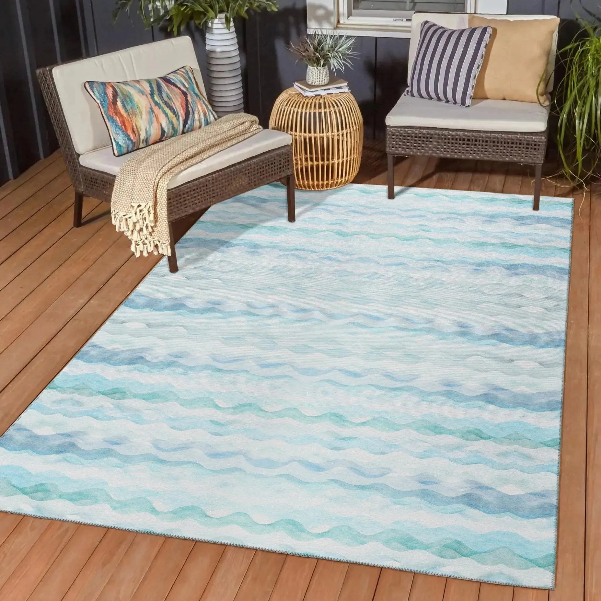 Remarkable Seabreeze collection has been created to inspire tranquility. Wow your guests with these versatile casual coastal rugs, stylish flat weave rug features vibrant colors with gradient movement in a variety of natural beach mosaic shapes and patterns. Featuring an ultra-soft and ultra thin pile, each rug is made with 100% polyester pile complete with a non-skid backing. Crafted in the USA using Foreign & Domestic materials and US labor. They are UV Stabilized for indoor and cover outdoor spaces.