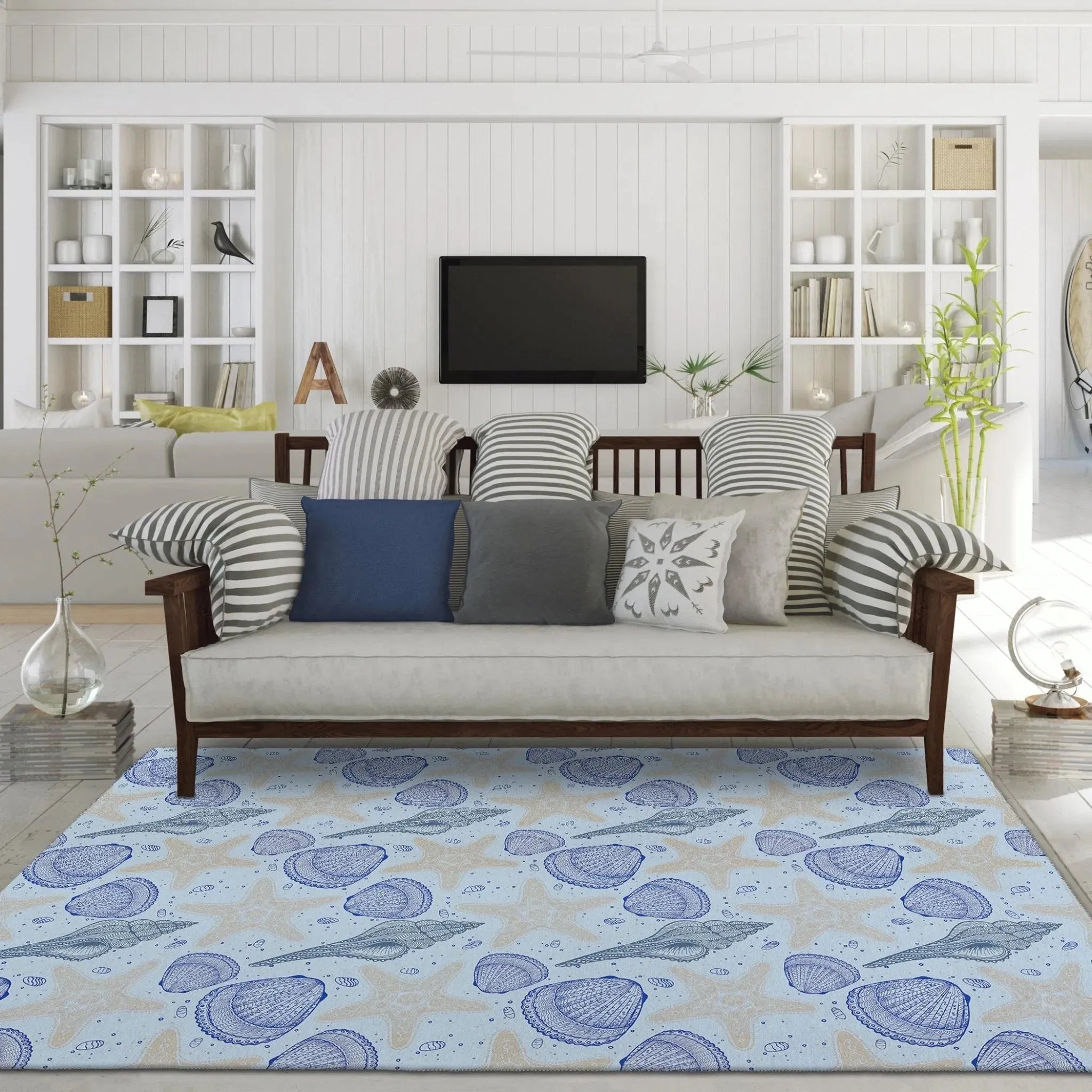 Remarkable Seabreeze collection has been created to inspire tranquility. Wow your guests with these versatile casual coastal rugs, stylish flat weave rug features vibrant colors with gradient movement in a variety of natural beach mosaic shapes and patterns. Featuring an ultra-soft and ultra thin pile, each rug is made with 100% polyester pile complete with a non-skid backing. Crafted in the USA using Foreign & Domestic materials and US labor. They are UV Stabilized for indoor and cover outdoor spaces.