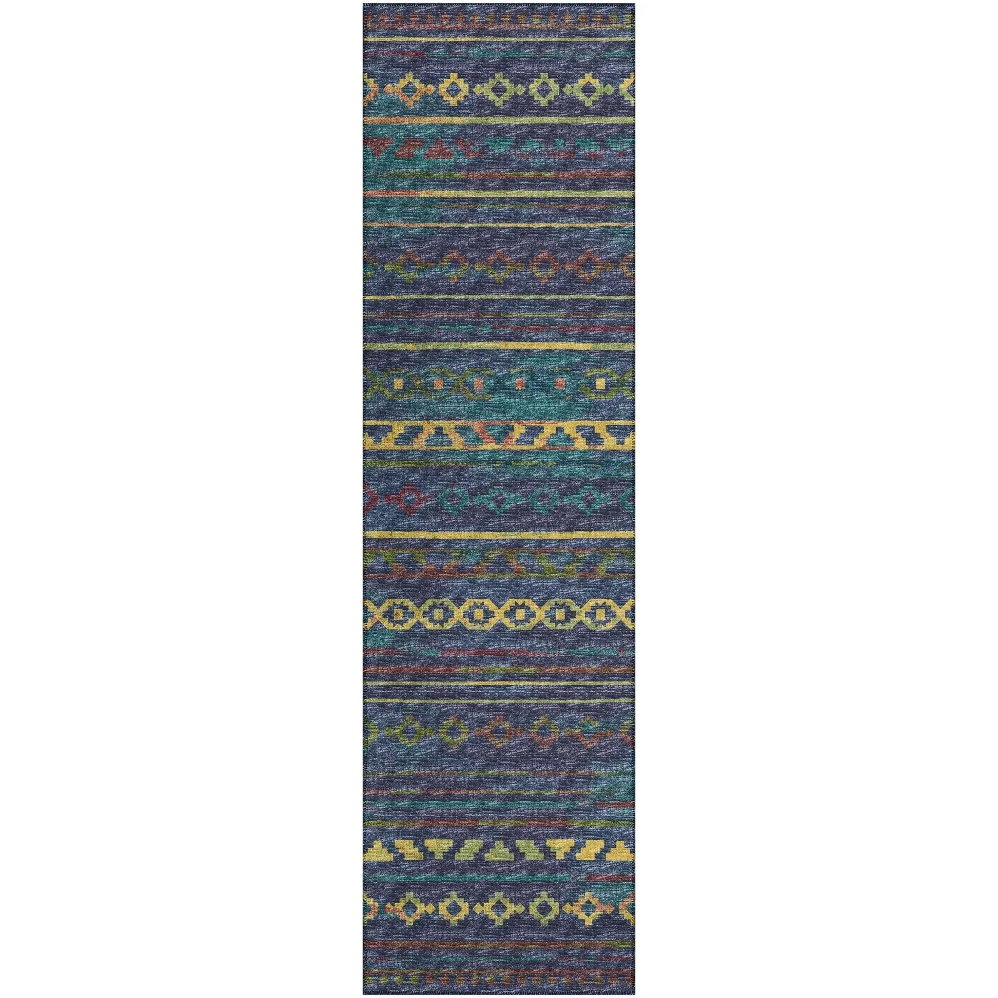 The Parisa PSA06 Denim/Multi Rug comes in various sizes, including 2x10, 5x7, 8x10, 8x11, 9x13, and 12x15 feet, accommodating different room dimensions.