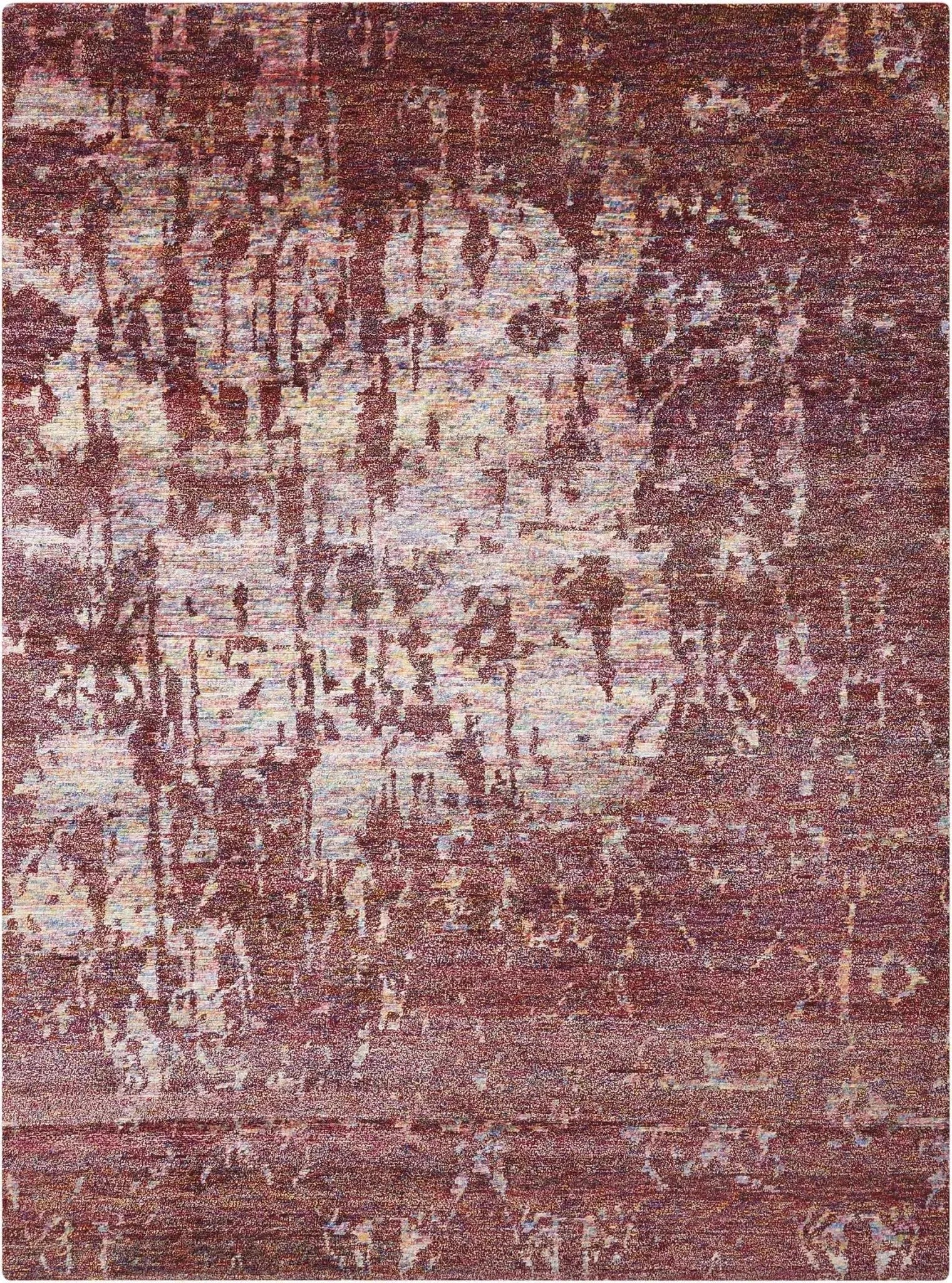 Redefine opulence with this luxurious collection of stunningly elegant rugs. Hand woven from premium wool and silk-like bamboo fibers, each velvety soft rug possesses a subtle yet luminous sheen. Designs feature contemporary and transitional motifs with tasteful colors and tone-on-tone contrasts. Hand woven for a superb texture and tone, this stunning rug features an alluring abstract design in sophisticated shades of wine and cream. Imparted with a discreet yet dazzling gleam for an effect that is out and out inspired.