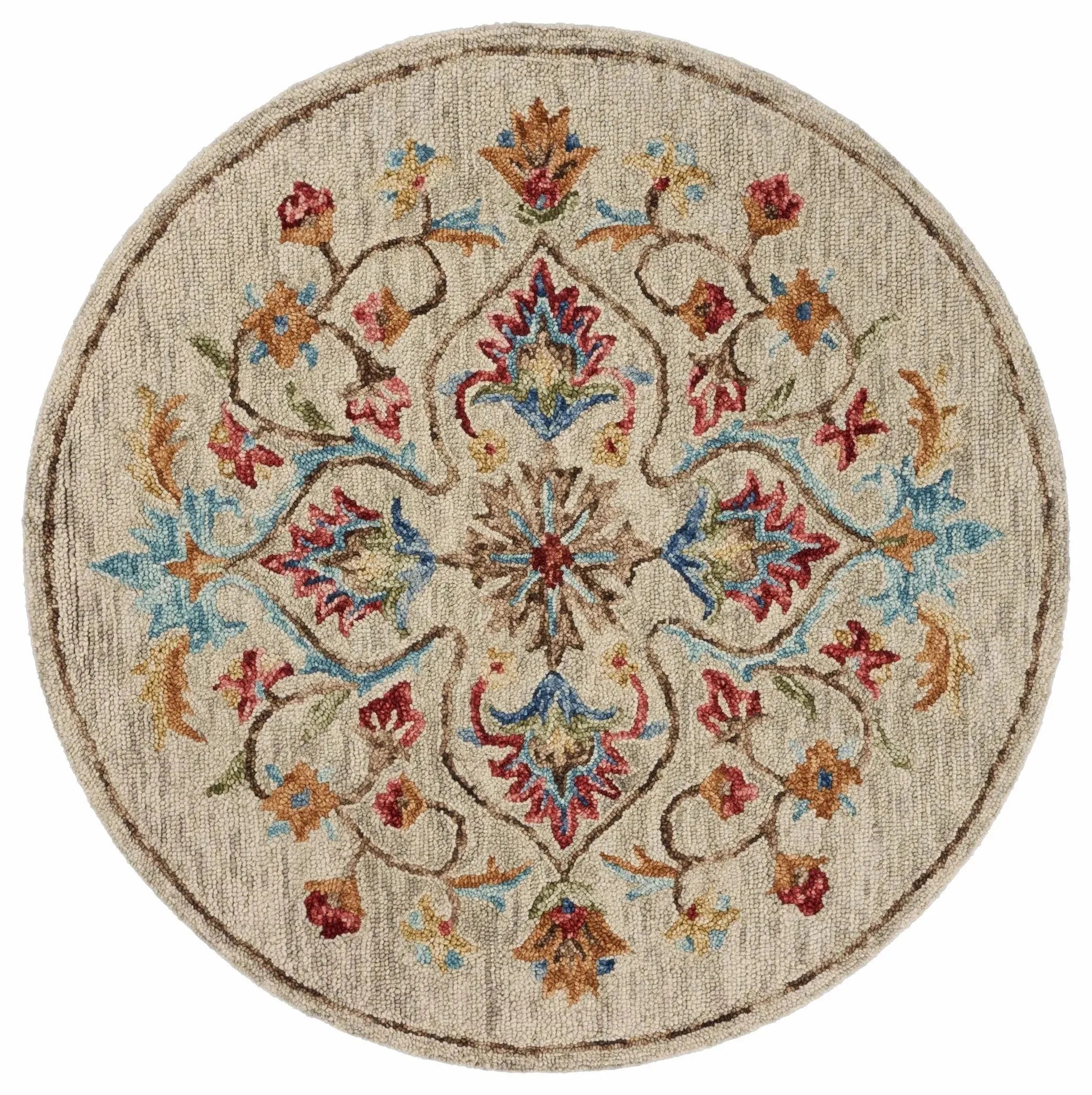 The medallion centered flowers in this piece are one of a kind. The beige toned background allows for an easy combination to a variety of different styles. Handmade in India, this piece has undergone delicate craftsmanship to bring a high quality piece into your home. The bordering edge allows for an easy transition from detailed rug to carpet or hardwood. No matter where you decide to place this piece it is sure to bring great style and happiness for many years to come.