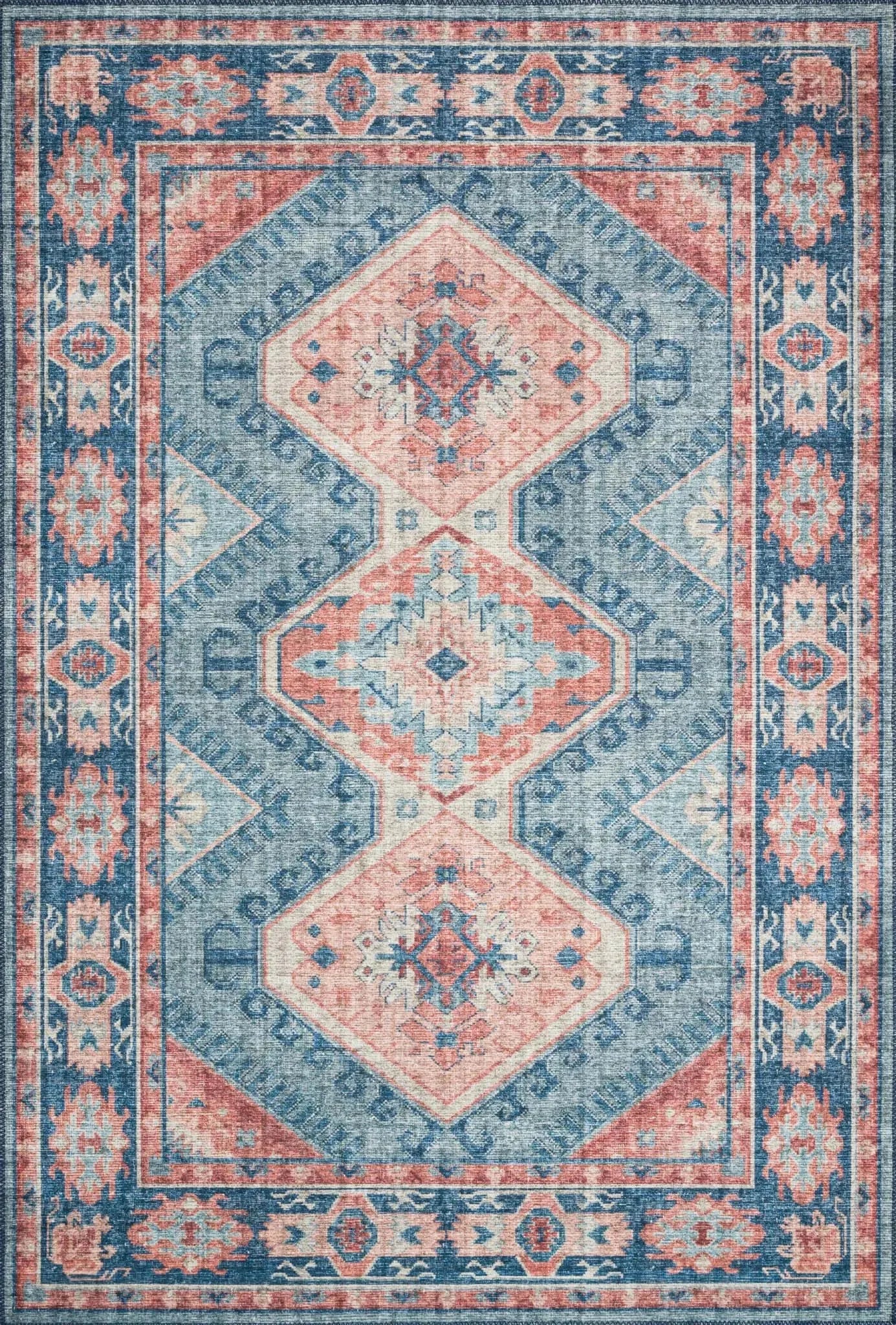 The Parisa PSA06 Denim/Multi Rug comes in various sizes, including 2x10, 5x7, 8x10, 8x11, 9x13, and 12x15 feet, accommodating different room dimensions.