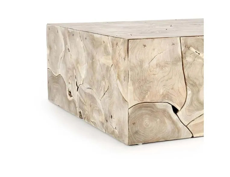 The Sorrento Coffee Table is crafted from teak wood, showcasing an organic modern design. The natural design of the wood highlights its unique grain and texture, adding a warm and earthy touch to your living space.