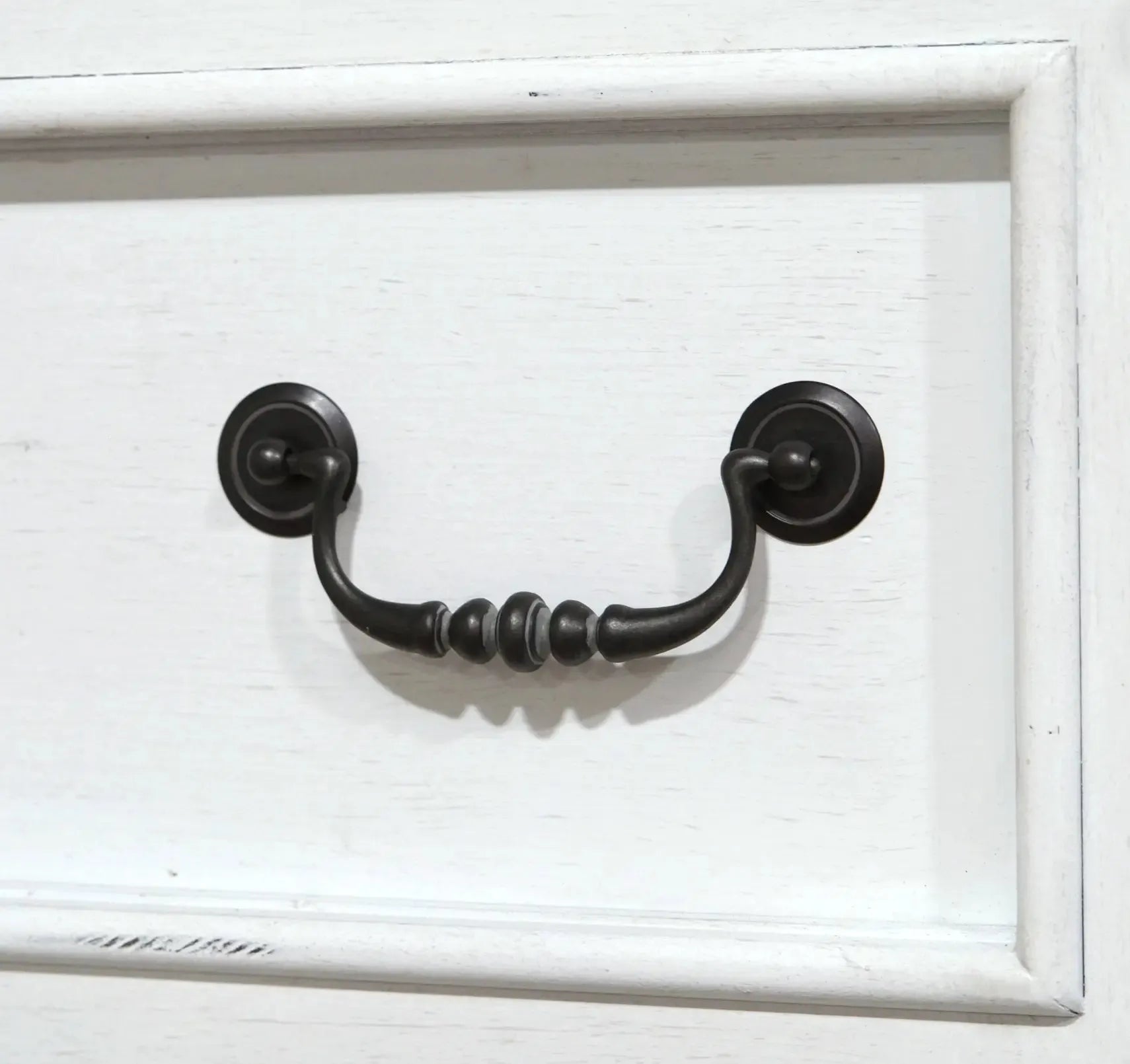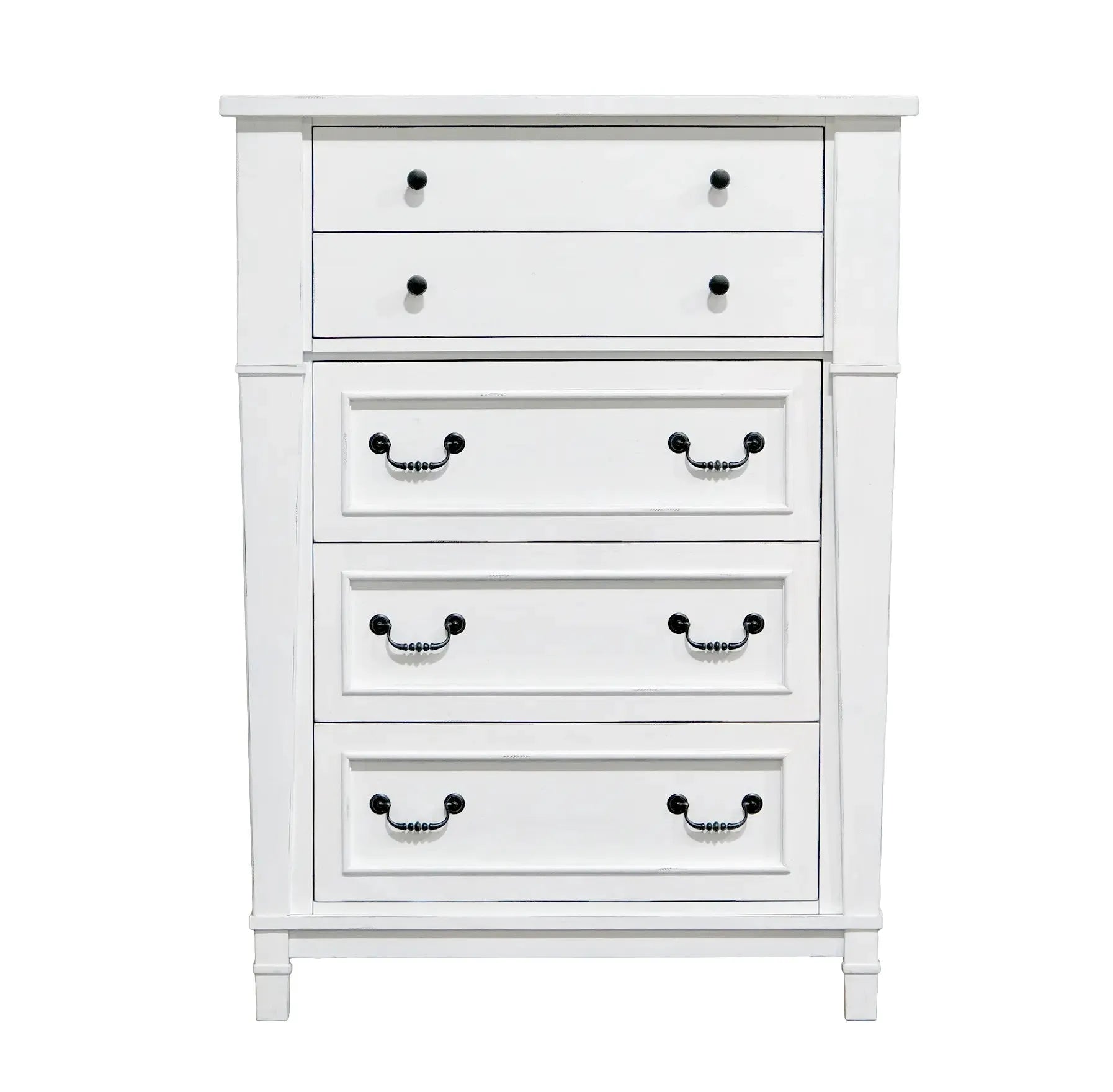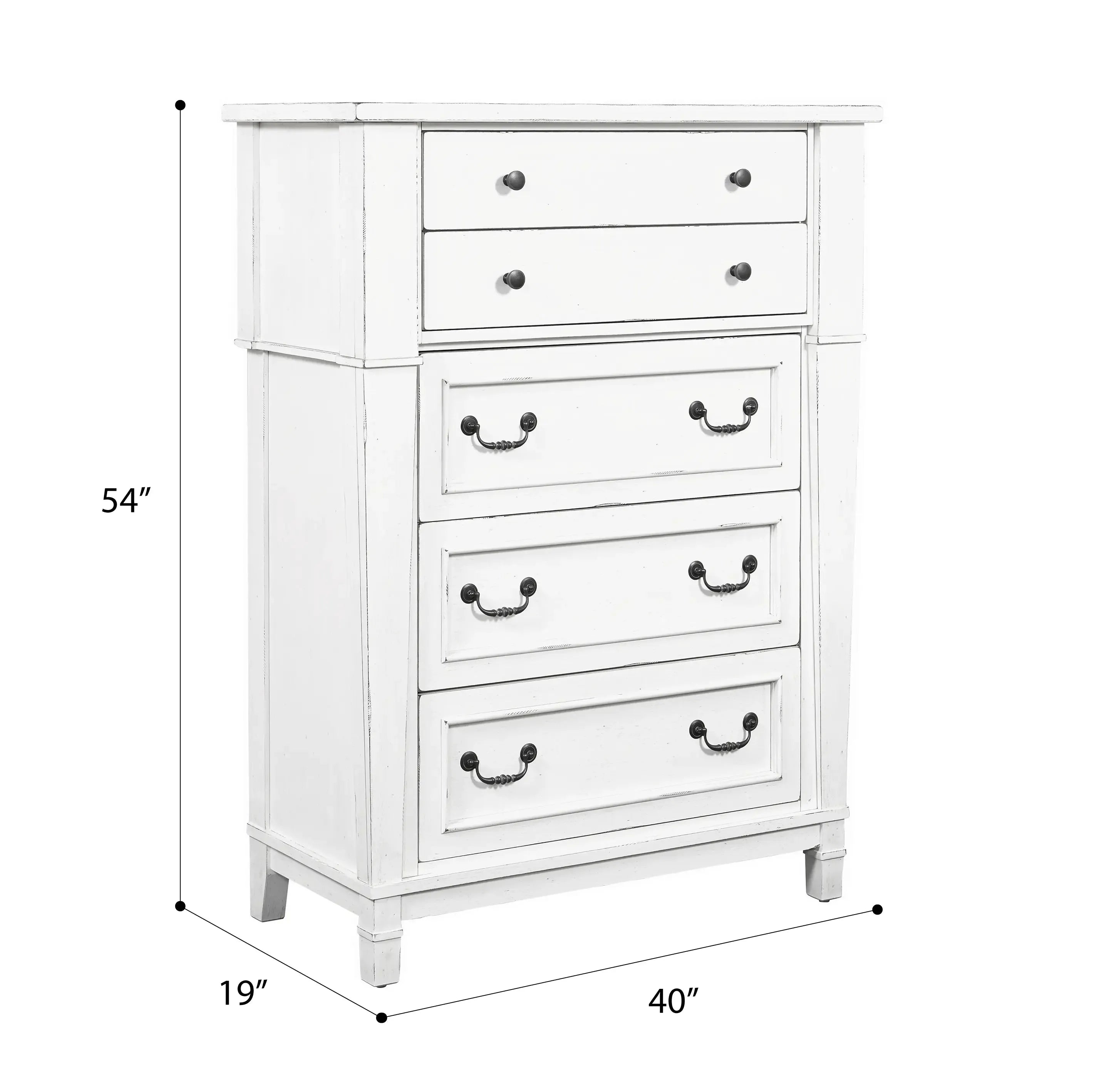 Complete your relaxing retreat with the Stoney Creek bedroom collection. This traditional bedroom set offers large-scale designs with a textured, antique white finish. Antiqued, blackened metal hardware and tapered leg detailing adds a little modern farmhouse charm to your home.